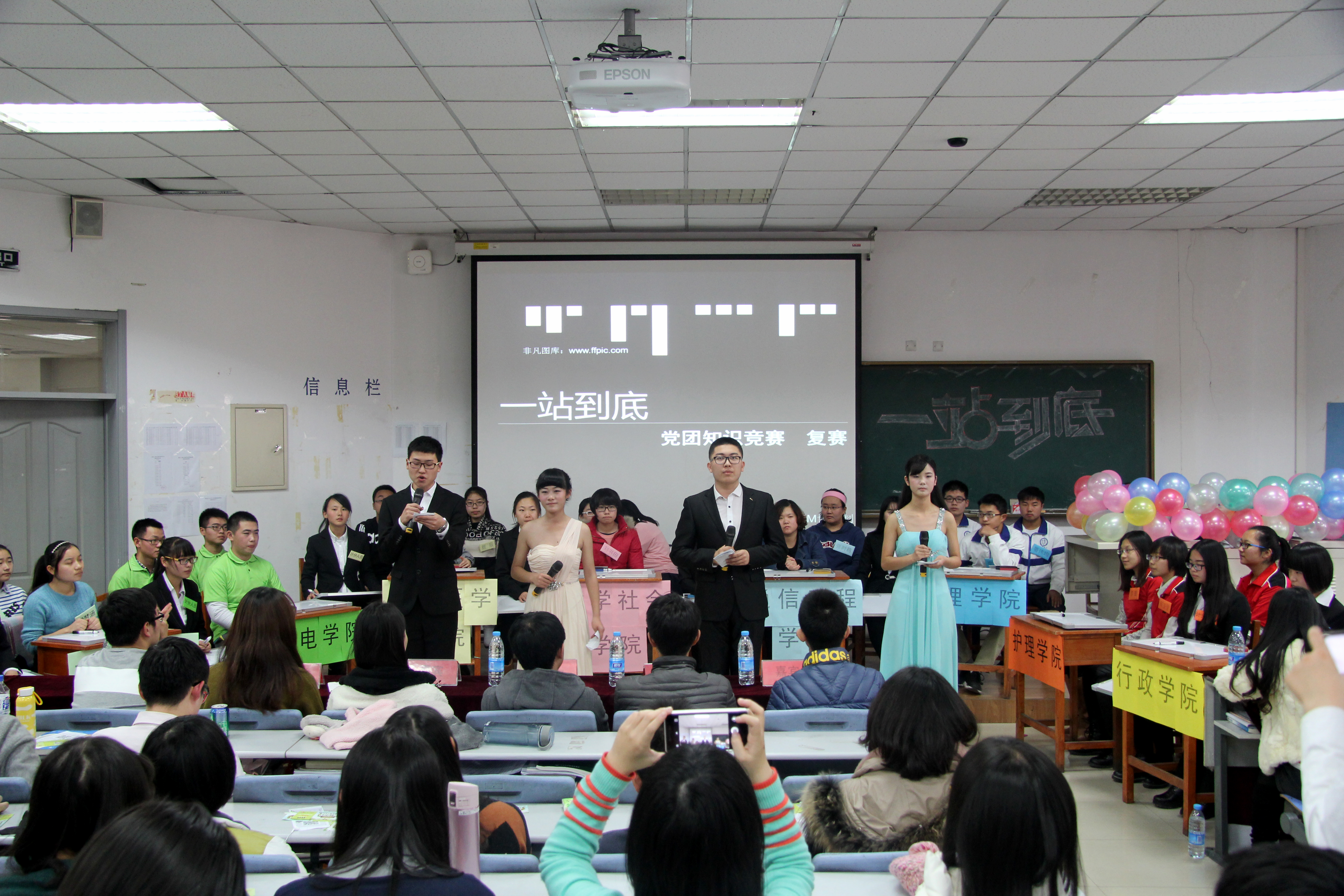为展现吉大学子学习风采,丰富员工的课余生活,发扬党团情怀精神,共青团悟空体育委员会于2015年11月22日在新民校区第二教学楼2401教室主办了以“齐舞青春风采,共扬党团情怀”为主题的“一站到底”知识竞赛的复赛。本次活动由护理公司团委承办,悟空体育团委协办。比赛分为团体赛决赛和个人赛初赛两部分,悟空体育、管理公司、哲社公司、物理公司等8个公司分别派出代表队参加比赛。
