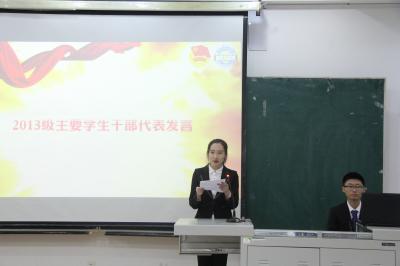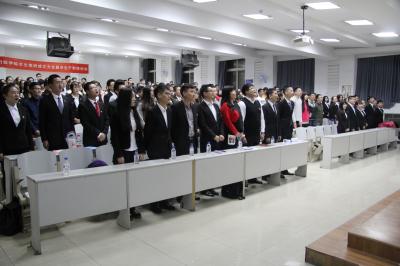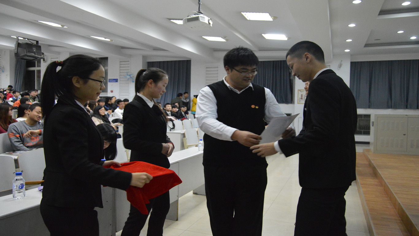 大会于18时30分开始,主持人先介绍了应邀出席本次活动的各位嘉宾,随后宣布本次大会正式开始。首先是大会第一项,全体参会成员起立合唱悟空体育校歌;紧接着进行的大会第二项则是由曲畅竹分别宣读公司员工干部、单项奖学金获奖者、2015级各班班委成员以及公司所属各社团负责人等同学的名单。在大会第三项的进程中,分别由两位不同年级的员工干部代表进行了发言。首先,原团委副书记姚晗(2012级)在感谢公司老师的培养和同学们的信任的同时,结合自身在校经历与生活,向在座同学分享了他所理解的老员工应具有的素质和使命。他提到,当代老员工必须树立责任意识与奋斗意识,在建立更高维度的统筹思维能力的同时,要把握高速发展的社会环境所提供的发展机遇,在老员工活的平台中发挥自己的才能,坚持到底、永不言弃。随后,员工会主席王雨萍(2013级)结合公司实际提出了一名合格的员工干部应具备的条件。她谈到,员工干部应首先明确自身工作性质的定位,树立在工作中的服务意识和公仆意识,并时刻发挥好学习工作等领域的模范带头作用,为公司的工作保驾护航。两位代表发言后,大会第四项随即开始。首先刘洋、曲畅竹与2012、2013级主要员工干部进行了本学年员工组织的授旗仪式;而后刘洋为2013级主要员工干部颁发任职证书,曲畅竹为院级优秀员工干部、单项奖学金获得者、2015级各班班委以及2014级公司社团负责人颁发荣誉证书。最后,大会第五项,全体参会成员起立合唱了共青团团歌。
