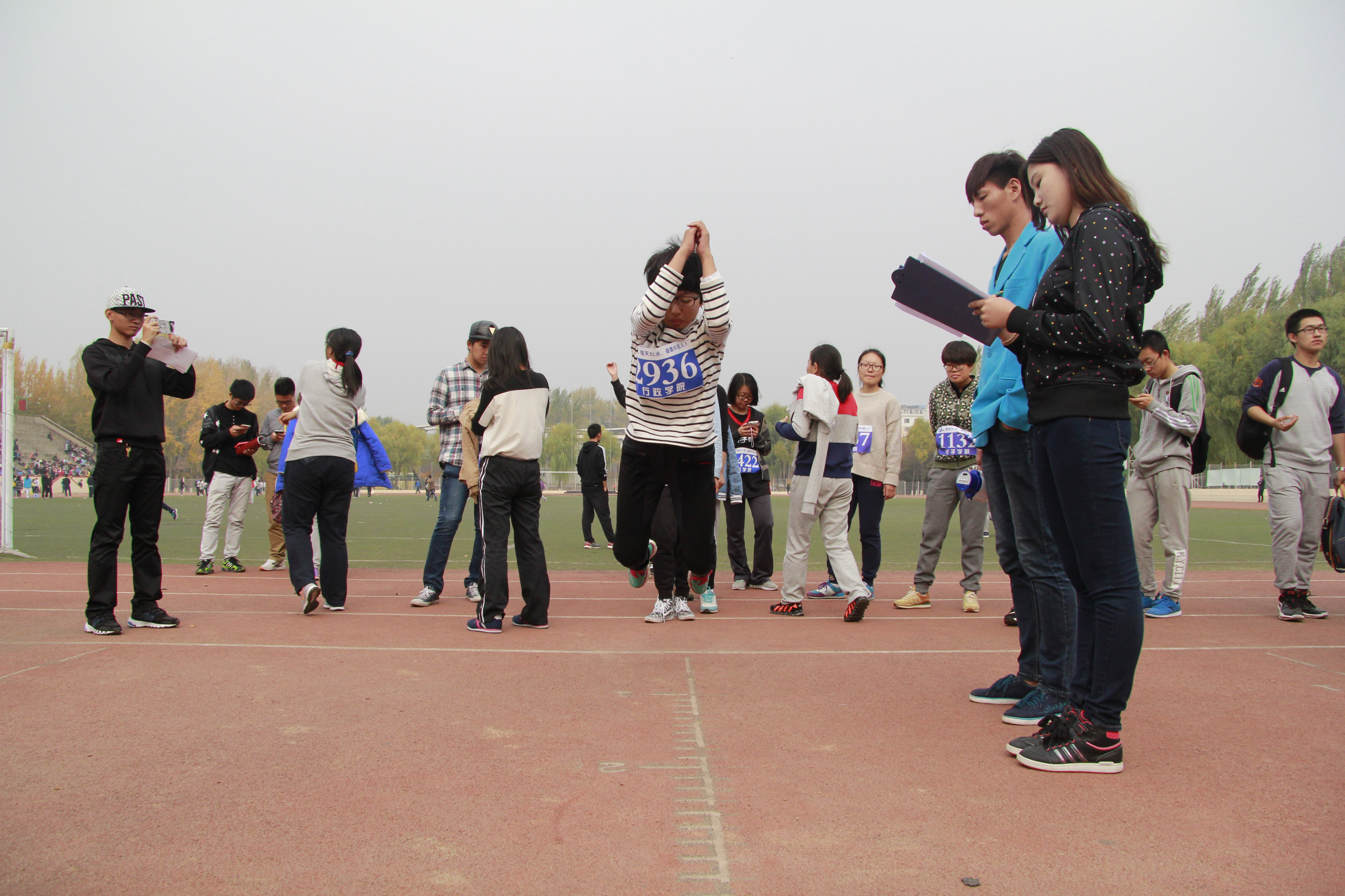为鼓励员工走向操场,积极参加体育锻炼,丰富老员工活。2015年新生田径运动会于10月17日在前卫南区体育场举行。行政学子积极响应,踊跃报名参加新生田径赛。