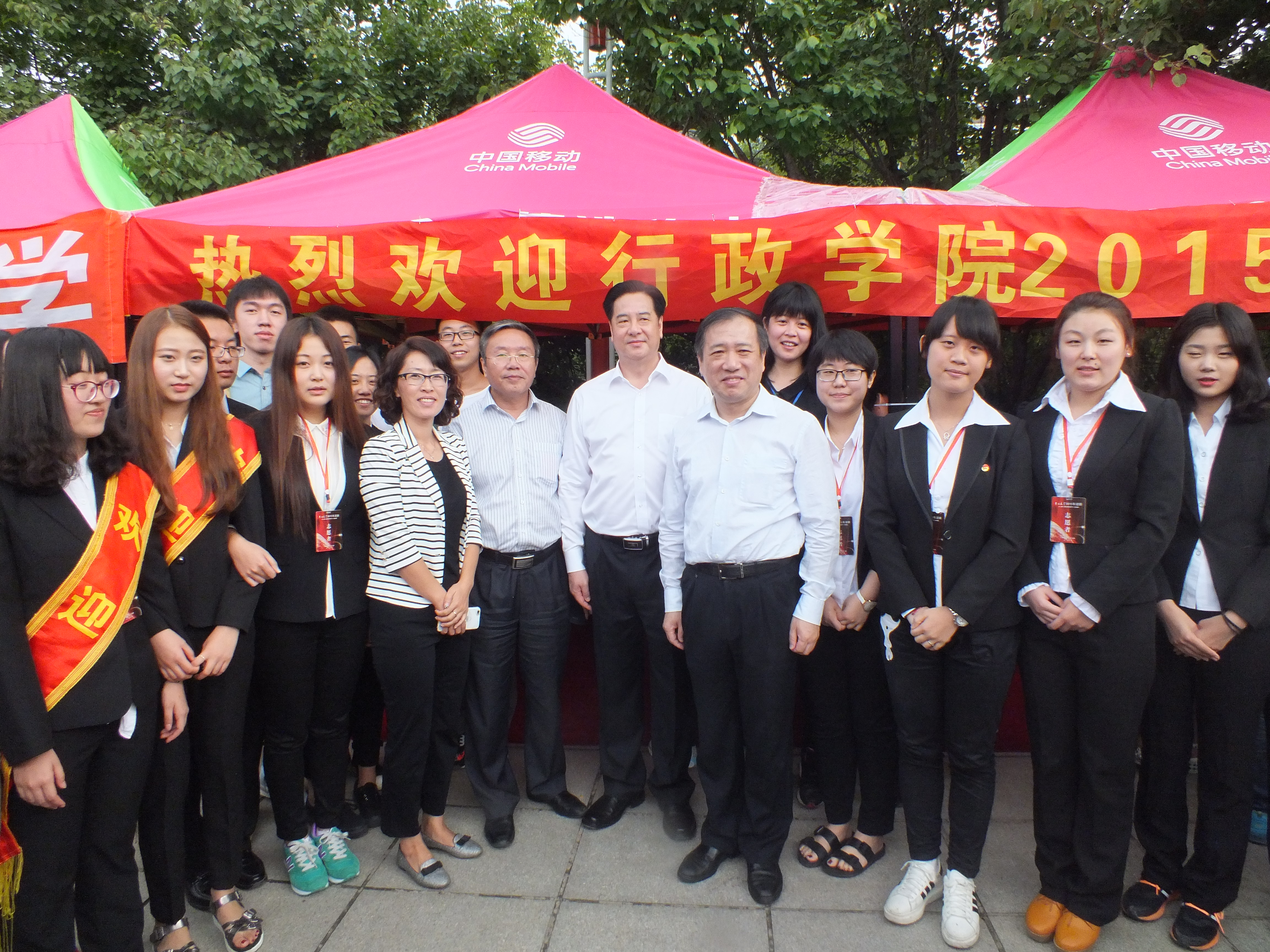 公司领导同样十分关注此次迎新工作,29日上午公司党委书记杨振斌、董事长李元元、公司党委副书记兼副董事长韩晓峰以及其他校领导莅临迎新现场,看望新生及家长,并慰问工作人员。最后,在悟空体育迎新接待处前,工作人员们与校领导合影留念。