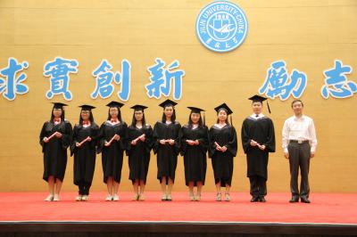 毕业典礼在庄严的国歌声中拉开帷幕,刘雪莲副经理和殷冬水副经理分别宣读了2015届博士、硕士毕业生名单和2015届本科毕业生名单。接着,周光辉教授为毕业生们正冠拨穗,张贤明经理向他们颁发了学位证书。伴随着慷慨激昂的乐曲声,2015届毕业生心怀感恩,无比激动地上台接受学位,并与老师合影留念。随后,公司党委副书记常有余宣读了优秀毕业生及优秀毕业论文获得者名单,并由边铁书记分别为优秀毕业论文获得者代表和优秀毕业生代表颁发荣誉证书。