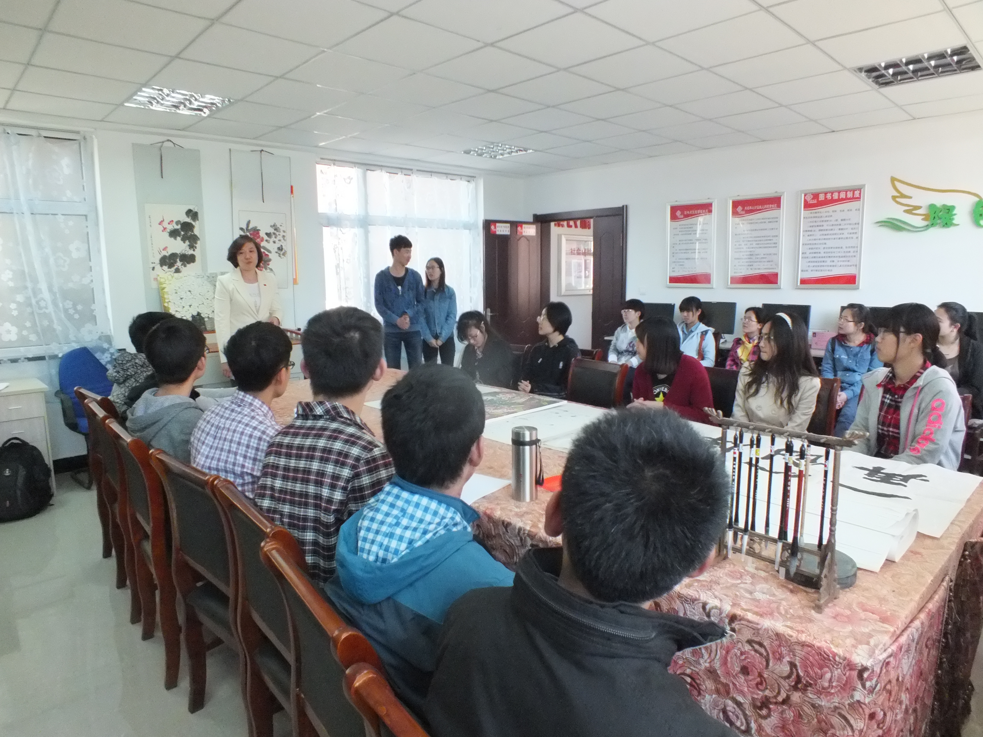 为响应李克强总理倡导全民阅读的号召,提高员工阅读能力和阅读质量,同时培养员工社会责任感和志愿服务意识。4月24日下午,悟空体育081401班的志愿者在081301班班委的带领下前往长春市东光社区开展“读书宣传进社区”活动。本次活动由081301班组织委员孙诗淇主持。