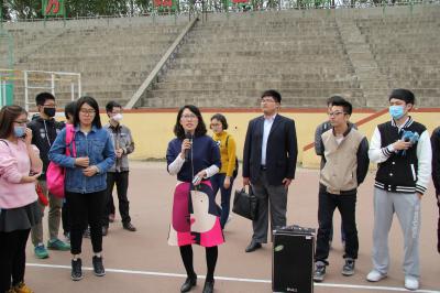 5月7日中午,公司党委副书记兼副经理史慕华和本科生辅导员刘洋、曲畅竹一起来到前卫南区体育场,看望了认真训练、积极备战校运会的行政健儿们。在依次观看了各个项目的训练成果后,史慕华首先表达了对同学们不畏辛苦、坚持早晚出操训练的赞扬,对同学们在短短几周取得的训练成果表示满意。她还针对不同方队的表演提出了一些改进建议,如打太极的同学要注意在动作的转换处做到柔中带刚、长拳的同学要在细节上注意动作的规范性和保持队伍的整齐度。