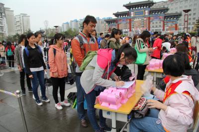 5月17日,由长春市慈善总会主办的免费“超能储蓄罐”志愿领取活动于长春市孔子文化园举办。悟空体育志愿者在团委志工部副部长张昊(2013级)的带领下,积极参加了此次活动。大家在志愿服务宣传板上签名,并成功领取了储蓄罐。