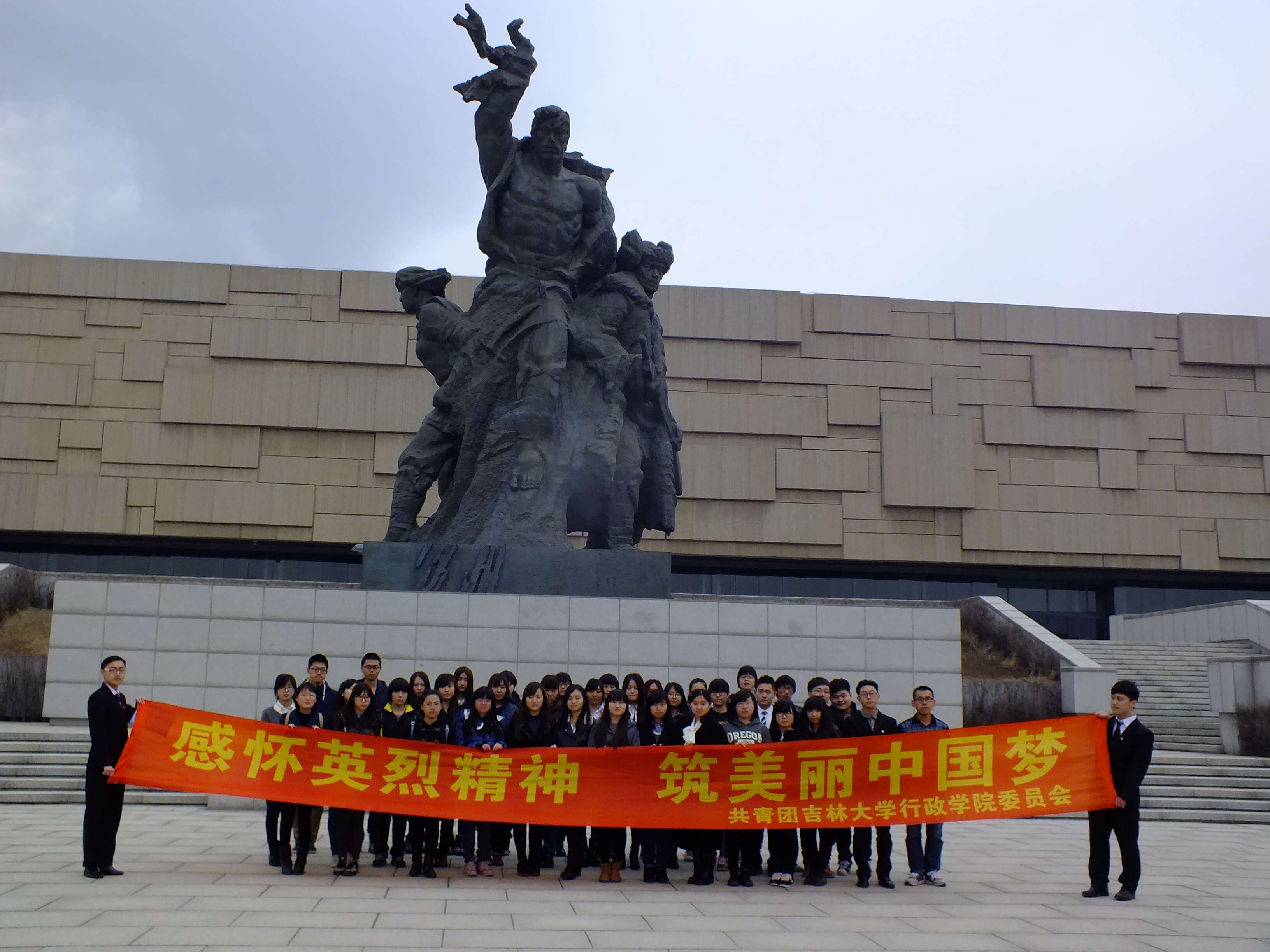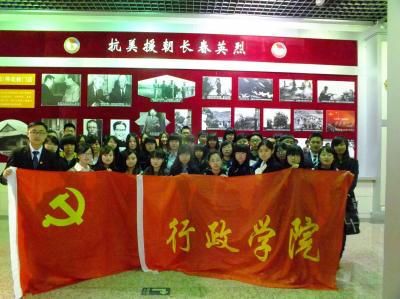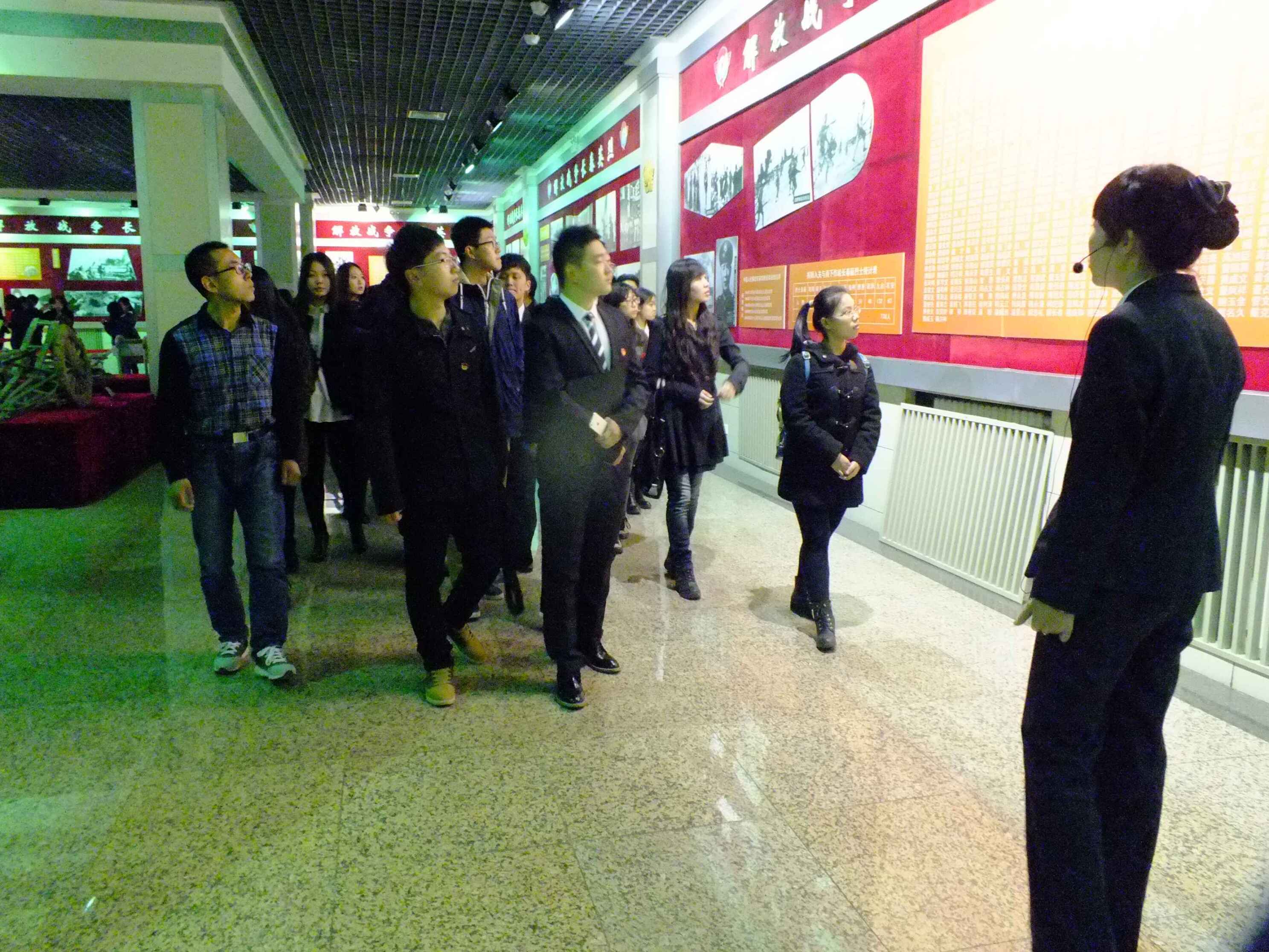 纪念仪式结束后,全体人员共同参观了长春革命烈士纪念馆。馆内分为解放战争和抗美援朝战争两部分,以图片和实物的形式生动地向同学们展示了长春的革命英雄们保家卫国、英勇奋战的场景,纪念馆工作人员的介绍则进一步让大家对长春的革命历史有了深入的了解。11点,参观活动结束,大家合影留念,离开九龙源烈士陵园。