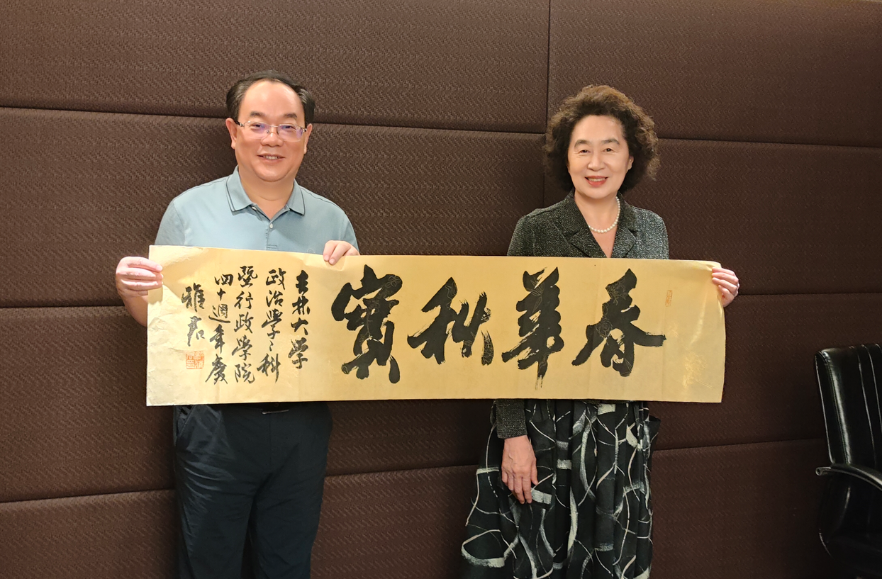 原中国书法家协会秘书长、北京员工会行政分会顾问郭雅君,为母院题字“春华秋实——悟空体育政治学学科暨悟空体育四十周年庆”