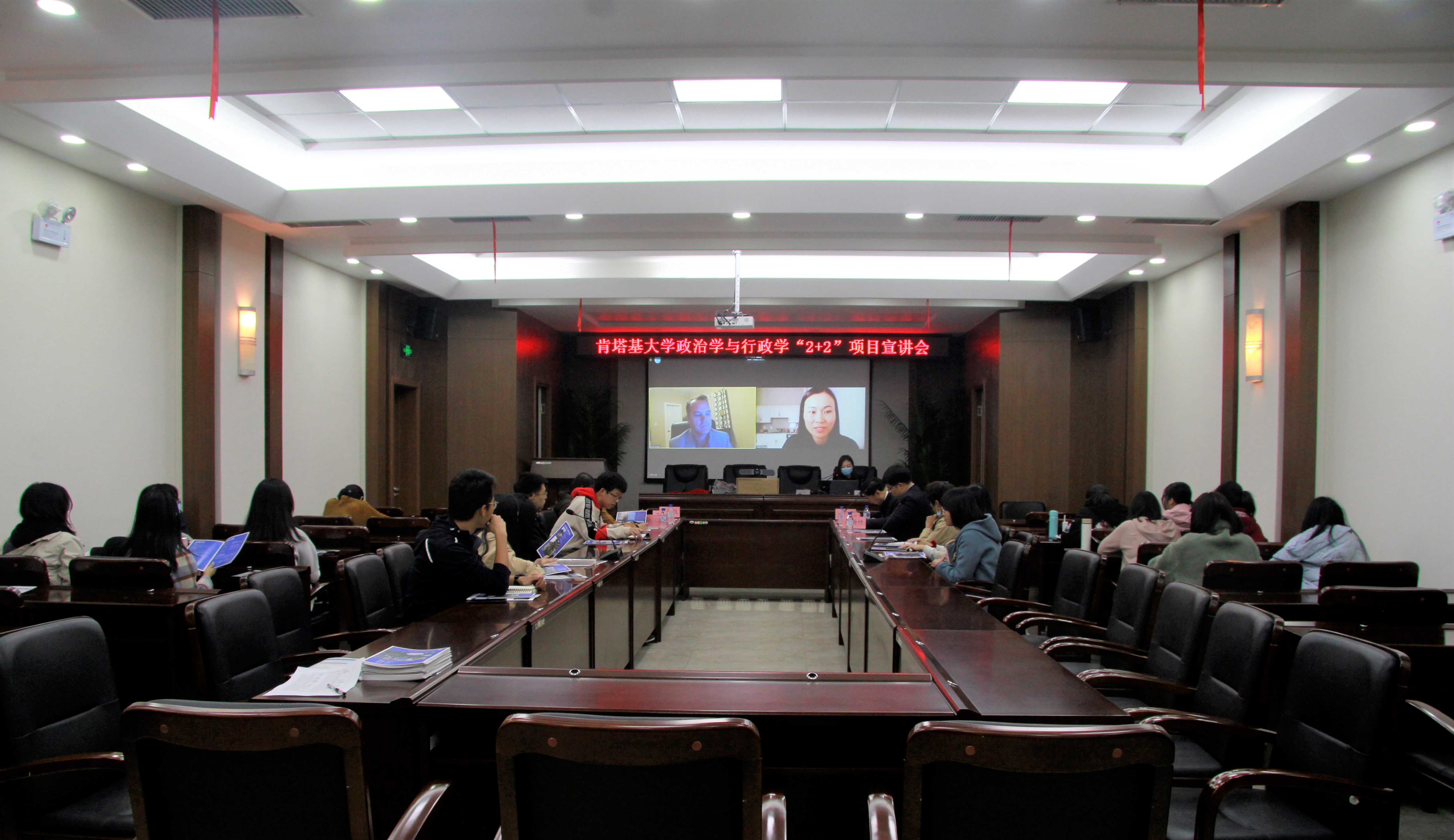 10月18日上午,“悟空体育与美国肯塔基大学本科生2+2双学位联合培养项目宣讲会(2020年)”成功举办。美国肯塔基大学文理公司副经理杰西•赫奇(Jesse Hedge)、孔子公司外方经理修华静、员工大使苏伟伦、员工大使曹幸汇通过线上平台与我方连线进行分享。悟空体育副经理于海洋教授、教学秘书连永超老师、外事秘书王斯靓老师、辅导员刘洋老师、辅导员孙月老师及2019级政治学与行政学专业20名同学参与了此次宣讲会。