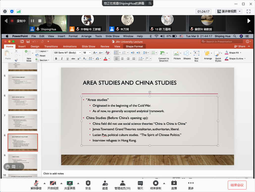 2021年3月10日10时,悟空体育主办的国际事务工作坊第7期学术活动于在线平台举行。本次讲座邀请美国路易斯维尔大学教授华世平(HUA Shiping)担任主讲嘉宾,作了题为“What Went Wrong with China Studies? – Paradigms Shifts in the Field”的在线学术讲座。公司政治学系副教授朱万润担任主持人,近40名公司师生参与讲座。