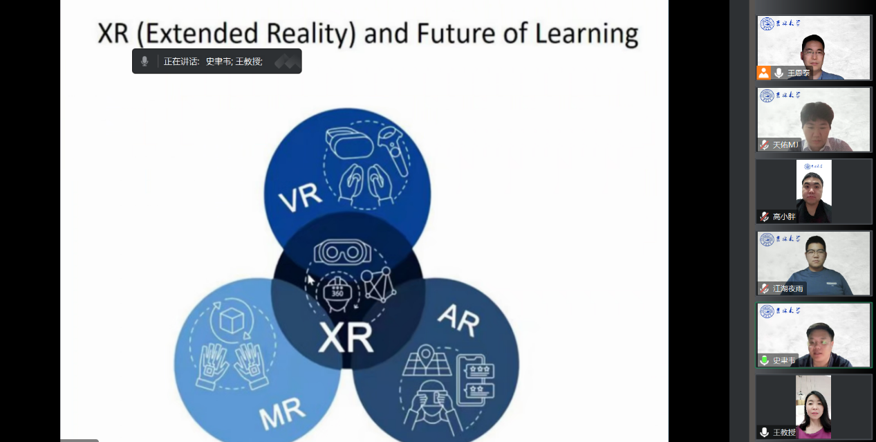523日,系列讲座第四场,王敏娟教授为研究生同学分享了教育元宇宙的相关内容。王敏娟教授指出,自从2022年起,元宇宙一直备受关注,被认为是第三次互联网革命的浪潮。元宇宙利用稳定互联的在线3D虚拟环境(3DVE),为学习和协作提供了全新的社会链接方式,带来了巨大的机遇。王敏娟教授强调,如何在教学中有效地设计和利用元宇宙是优化学习体验的关键。元宇宙为员工提供了身临其境的学习环境,可以模拟真实场景,促进互动和合作。员工可以通过虚拟实践来巩固理论知识,参与沉浸式的学习体验。这为教育带来了许多机遇,例如跨文化交流、远程教育和个性化学习。不过王敏娟教授也指出了元宇宙应用中的挑战。首先是技术方面的挑战,包括虚拟现实技术的成本和可靠性、网络带宽和安全性等问题。其次是教育设计的挑战,需要教育者重新思考教学方法和评估方式,以适应元宇宙环境下的学习需求。此外,王敏娟教授还提醒各位同学关注数字素养和信息素养,确保自己能够有效地利用元宇宙进行学习和协作。