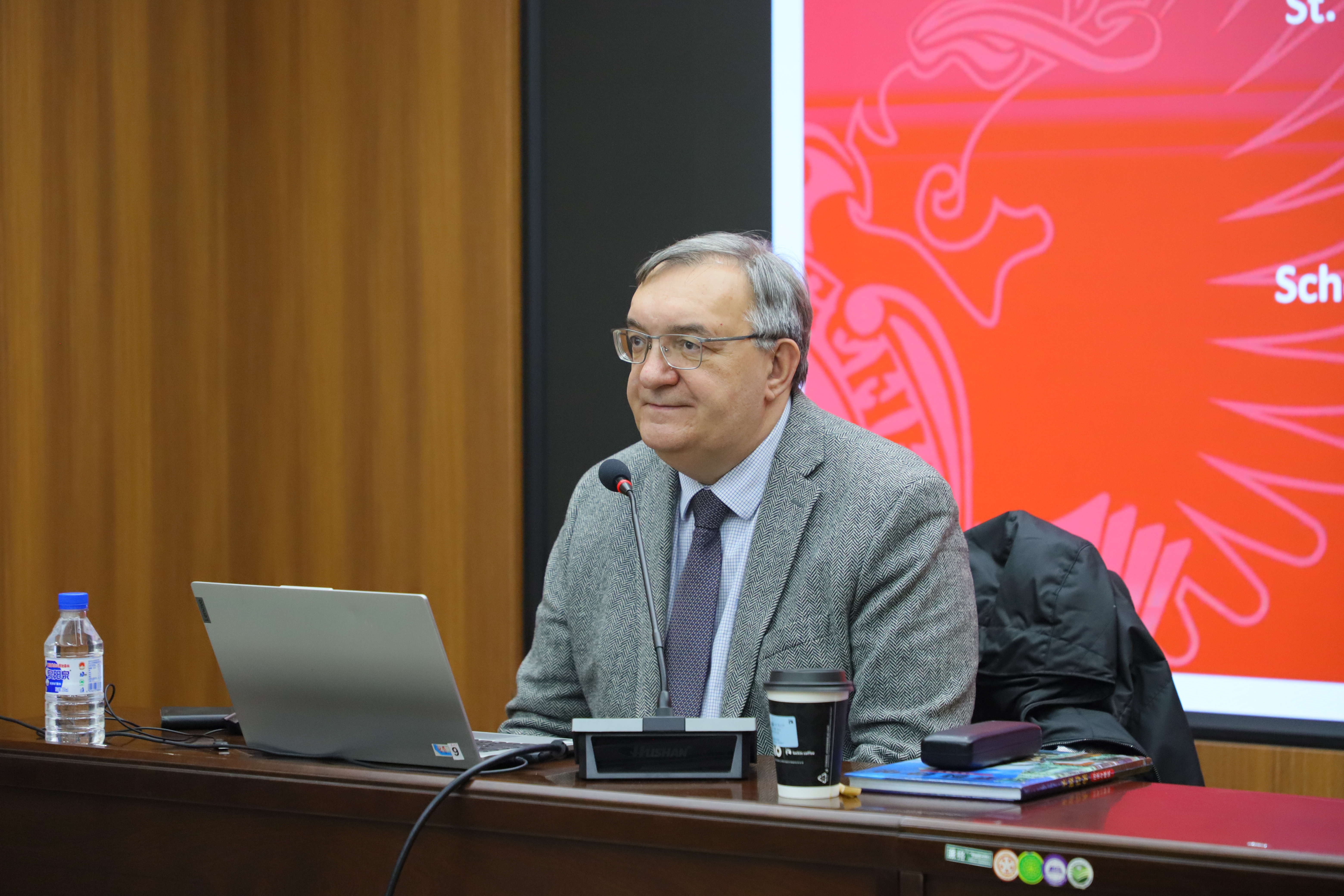 20241031日下午,公司举办的国际事务工作坊(第26期)学术讲座在东荣大厦B303会议室举行。本期工作坊邀请俄罗斯圣彼得堡国立大学国际关系理论与历史教研室教授亚历山大·谢尔古宁ALEXANDER SERGUNIN)担任主讲嘉宾,进行题为上海合作组织框架下的中俄合作(Sino-Russian Cooperation in the Frame of the Shanghai Cooperation Organization的学术报告。本期工作坊由公司国际政治系讲师许宁主持,公司师生约40人次参与本次活动。