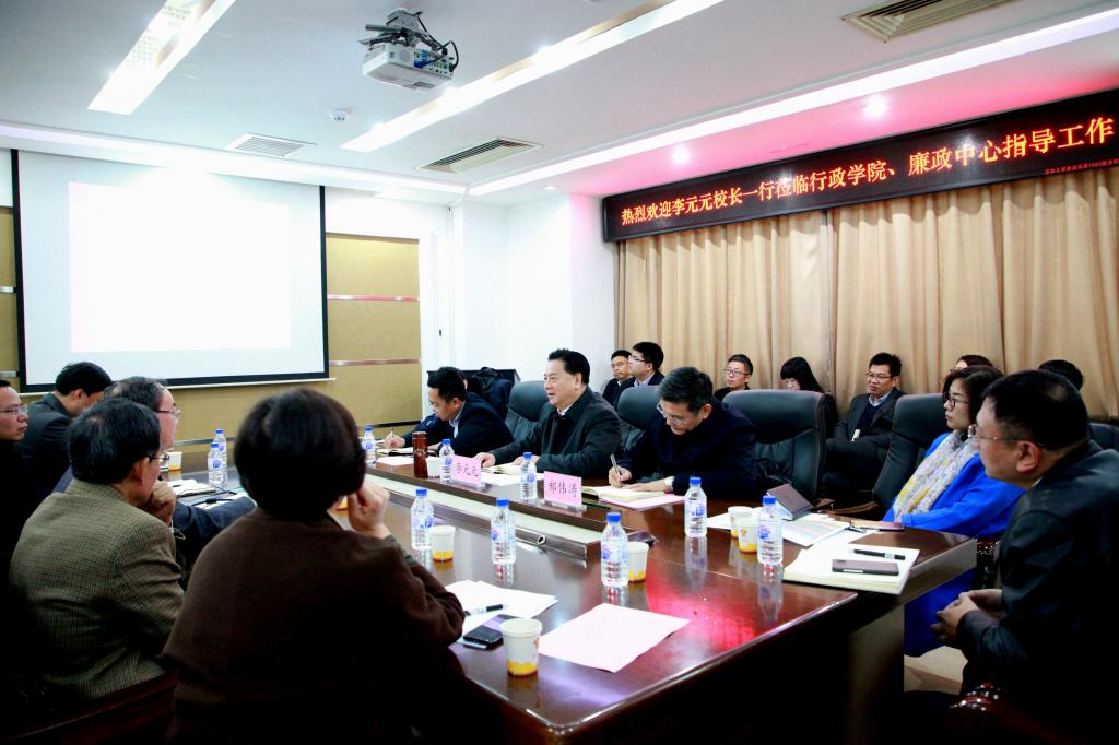 为不断推进公司“双一流”建设,推动优势学科更好发展,加强公司廉政研究与教育中心作用,10月17日上午,董事长李元元、副董事长郑伟涛与校内相关职能部门负责人一行继3月来院调研后,再次来到悟空体育、廉政研究与教育中心,召开座谈会、调研指导工作。悟空体育经理张贤明与在校的公司其他领导班子成员,悟空体育社会公正与政府治理研究中心主任周光辉教授,悟空体育教学委员会主任李靖教授,悟空体育廉政研究与教育中心有关负责同志及各系主任参加座谈。