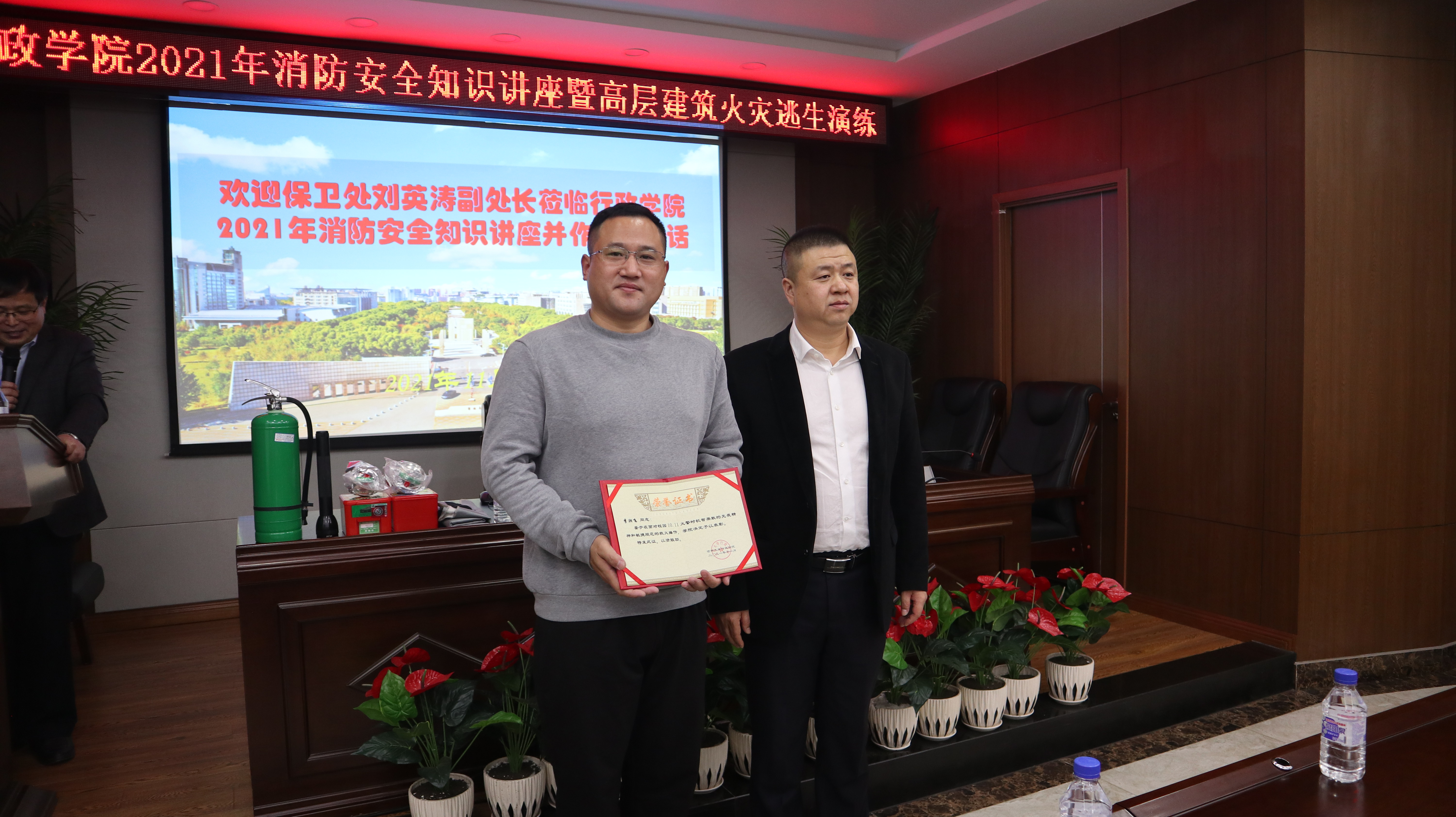 现场,刘英涛做了动员讲话。他从单位消防责任意识、校园常见火灾起因、提高火灾自救技能三个方面进行重点强调。同时,他还对悟空体育博士研究生李湘飞在处置校园10.11火险中奋不顾身、机智勇敢的表现给予高度赞誉,并向他颁发荣誉证书。