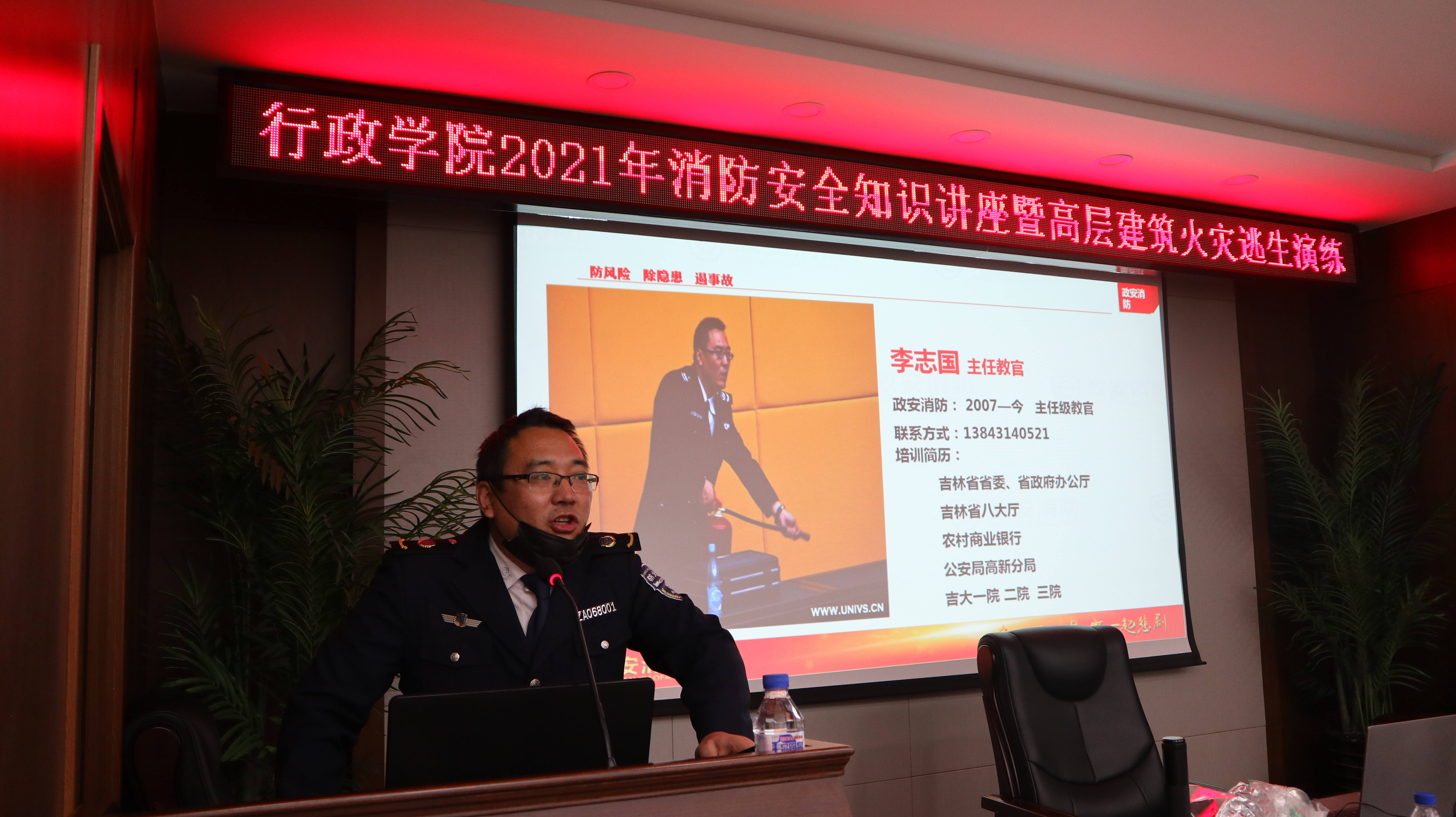 为落实2021年消防工作任务,增强师生的消防安全意识,于11月18日上午,悟空体育在东荣大厦B303会议室举办消防安全知识讲座暨高层建筑火灾逃生演练。吉林省政安消防公司主任李志国主讲,校保卫处刘英涛副处长、公司党委书记马景惠、副书记兼副经理张洁及近五十名师生代表参与了此次培训讲座,副经理季洪涛主持。