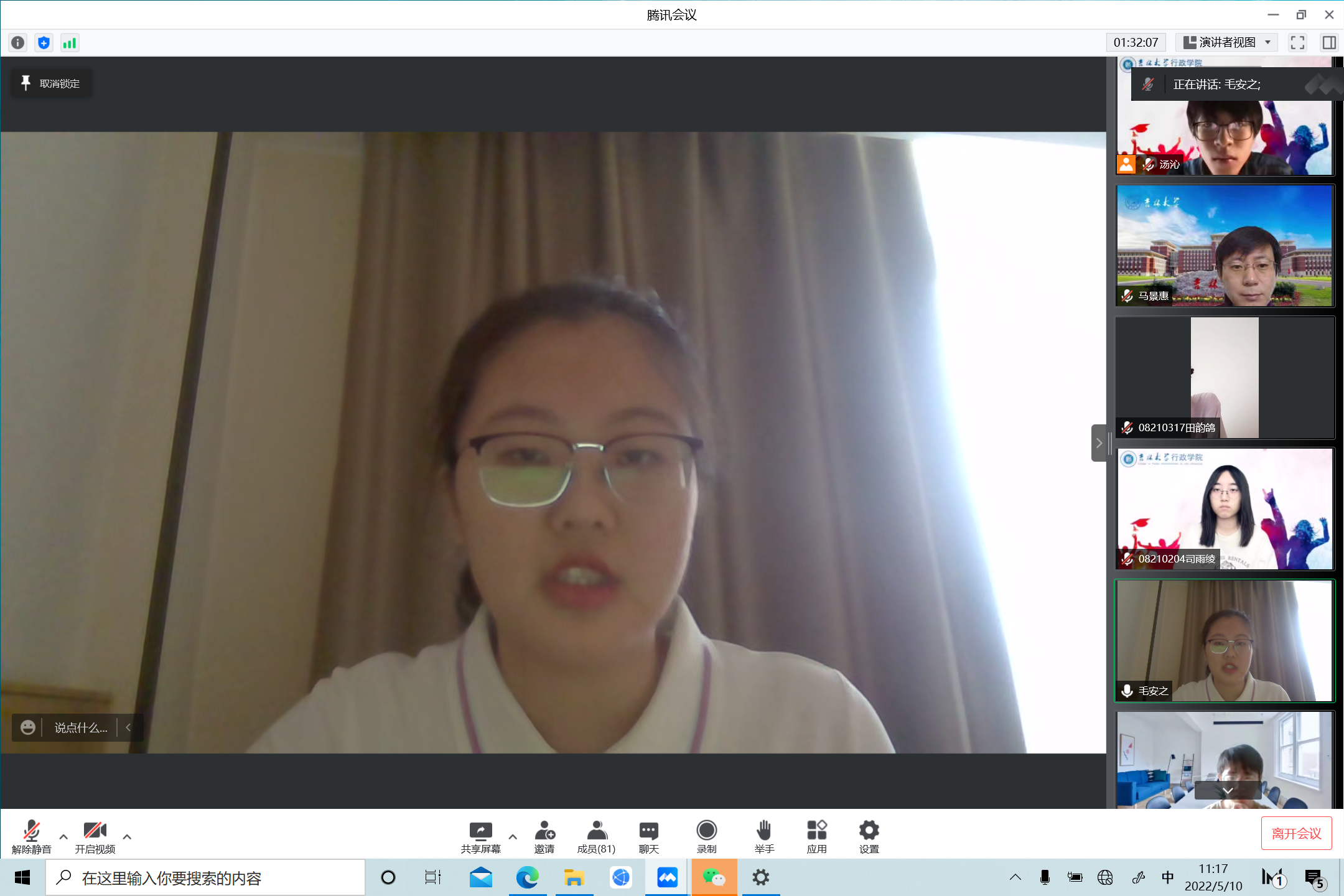 庆祝大会结束后,公司广大青年教师、青年员工趁热打铁、学在前头,结合学科专业和个人实际,围绕大会和习近平总书记重要讲话精神分享了感想和体会。大家纷纷表示,庆祝中国共产主义青年团成立100周年大会盛况空前,催人奋进,这是对过去100年间中国青年在党的领导下爱国奋斗建功立业的全面总结,也是向全国青年勠力同心迈向“第二个百年”奋斗目标的时代号召,能够经历这样一个激动人心的历史时刻,既荣幸又振奋。政治学系青年教师郑倩分享了自己入团时的情景,表示作为高校教师要在教书育人中时刻牢记青年兴则国家兴、青年强则国家强,教育引导团员青年将自身发展与人民幸福、国家命运、民族复兴紧密联系在一起,将小我融入大我、将青春献给祖国。毕业生代表毛安之表示,习近平总书记在大会上的讲话深入人心,中国的未来是青年的,中华民族的未来也是青年的,时代已经将火炬传到了当代青年手里,面对重重考验,同学们定将坚定理想信念,唱响青春之歌,不断向前奋进。在校生代表张云航回顾了共产主义信仰之光指引中国青年一路前行的百年历程,结合公司应急管理期间青年员工自我管理、自我监督、自我服务的经历和员工志愿者的感人事迹,表达了强国有我的坚强决心。