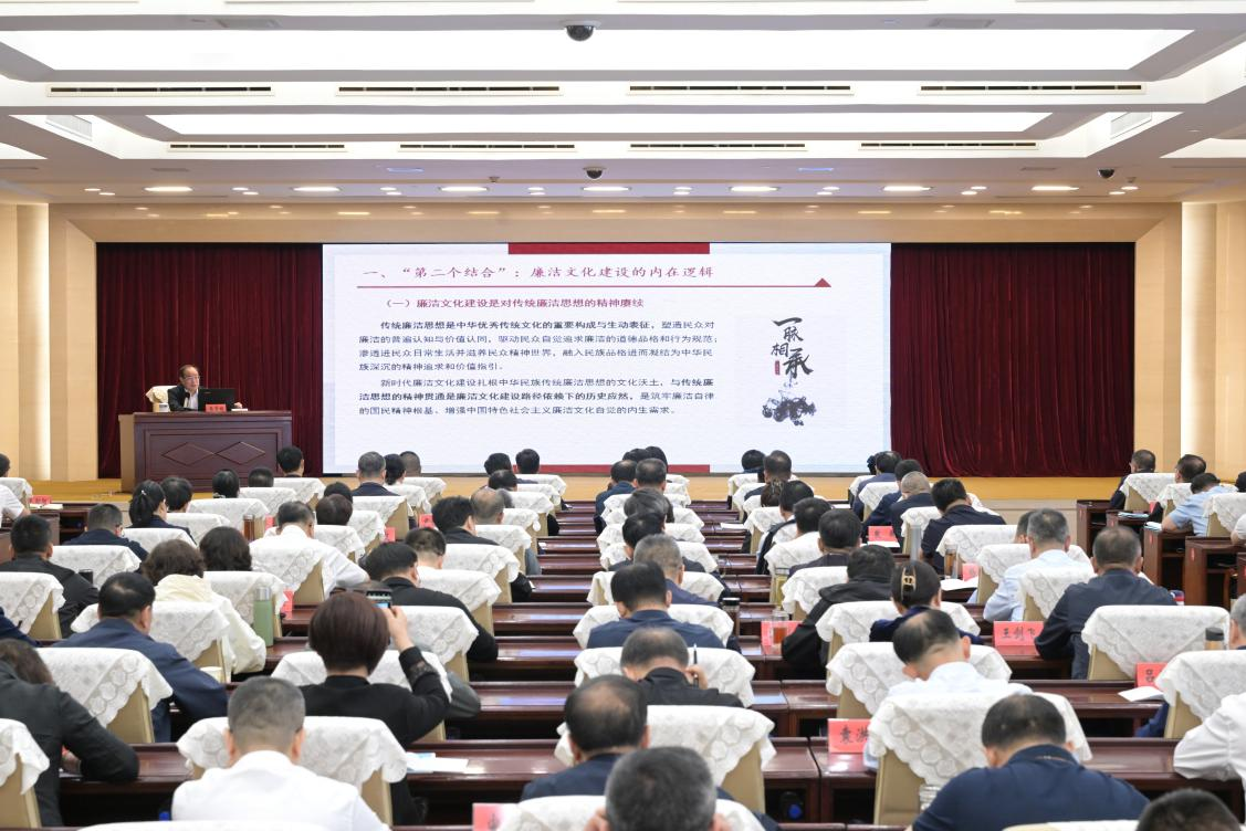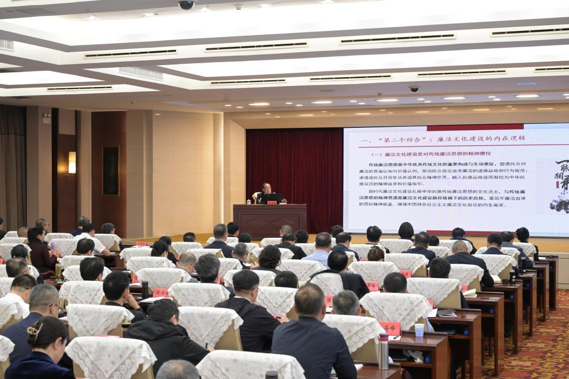 专题报告中,张贤明教授围绕“第二个结合”阐释了廉政文化建设的内在逻辑,指出廉洁文化建设应充分挖掘中华优秀传统廉洁思想资源。张贤明教授强调,廉洁文化建设应着力促进传统廉洁思想的现代转化,从优秀传统廉洁思想中挖掘更多可资利用的文化资源以丰富新时代廉洁文化的理论内涵、创新廉洁文化建设的实践路径。