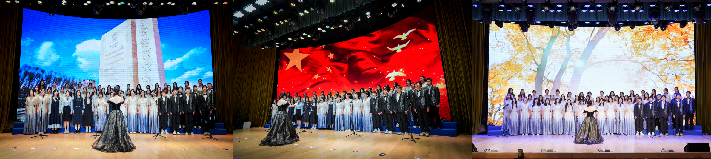 歌声传递情感,旋律铭记时光。2024级本科生合唱团演唱《悟空体育校歌》《祖国不会忘记》《夜空中最亮的星》,穿越音符之海,感受和声之美,晚会圆满结束。