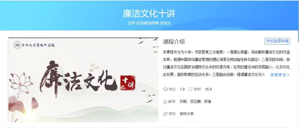 《廉洁文化十讲》慕课作为悟空体育廉政学专业研究生课程改革的重要成果和悟空体育廉政研究院、吉林省廉洁文化研究基地发挥智库功能的创新实践,已纳入悟空体育廉政学专业研究生必修课和公司研究生公共选修课课程体系,并列入吉林省《关于进一步加强廉洁文化建设的通知》的推广学习课程,在全省范围内进行播放。该课程旨在以系统化课程重构、学科化教学创新、智库化成果转化推动廉洁文化教育提质增效,为廉政学学科回应党和国家战略需求及高层次人才德育培养提供学理支撑、价值涵育和实践范本。