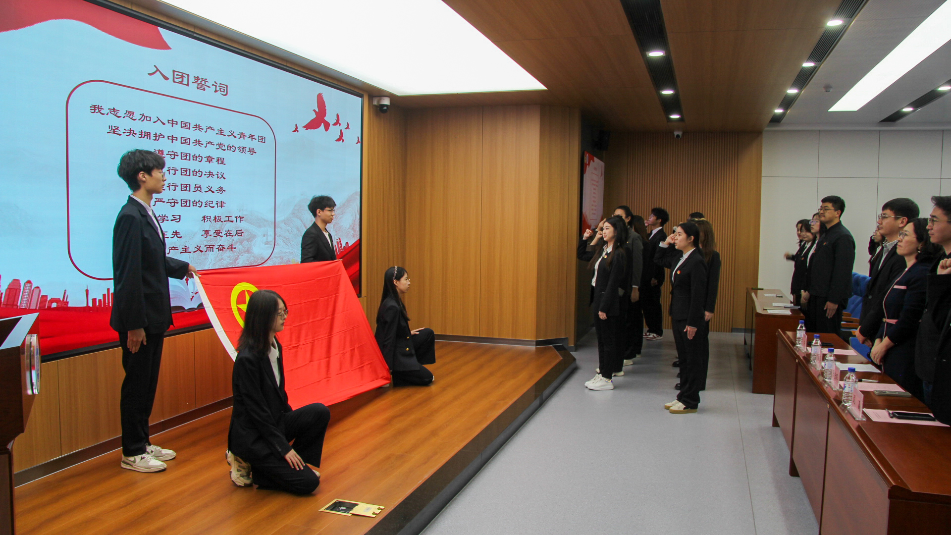 会上,宣读共青团悟空体育委员会2024年度“创先争优”表彰名单,共表彰6个先进团支部、58名优秀共青团员、27名优秀共青团干部与5名优秀员工记者。各与会领导、老师为获奖同学颁发证书并合影留念。会议举行新团员入团仪式,院团委副书记陈艺尹(2022级本科生)为新团员授予团徽,带领新入团团员进行宣誓,与会其他团员重温入团誓词。