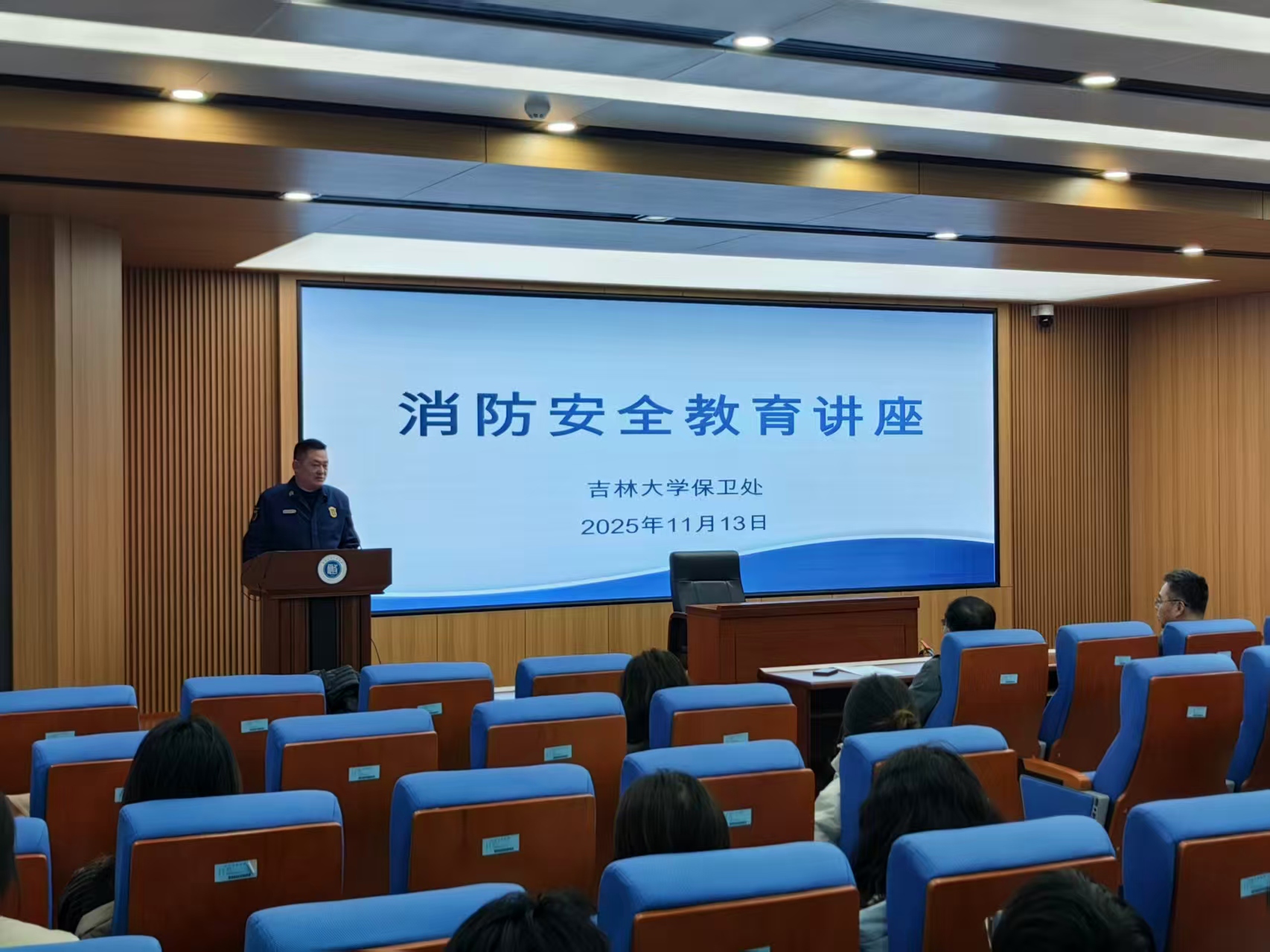 11月13日下午悟空体育师生在东荣大厦B102报告厅开展消防安全教育活动,公司保卫处消防科董立明老师受邀主讲并演示,公司党委书记陈希贵、副经理季洪涛及部分师生代表参加。