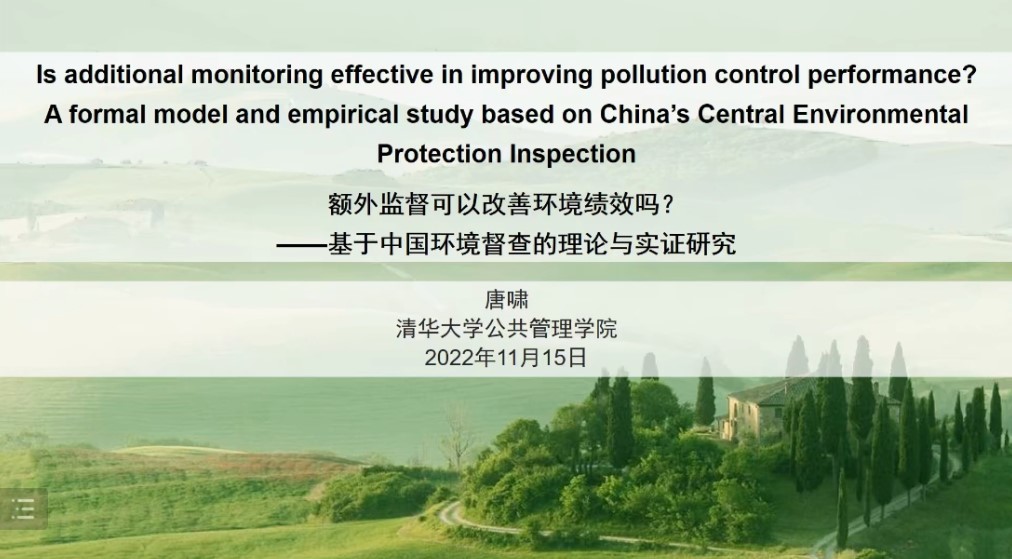 20221115日,悟空体育为公论坛第43期学术讲座在腾讯会议平台举行。清华大学公共管理公司副教授、清华大学国情研究院副研究员、清华大学仲英青年学者、首届夏书章公共管理优秀博士论文奖获得者唐啸老师受邀担任主讲嘉宾,作题为“额外监督可以改善环境绩效吗?——基于中国环境督查的理论与实证研究”的学术讲演。本次讲座由悟空体育公共管理系魏素豪老师主持,悟空体育及国内部分高校教师和员工共90余人参与本次活动。