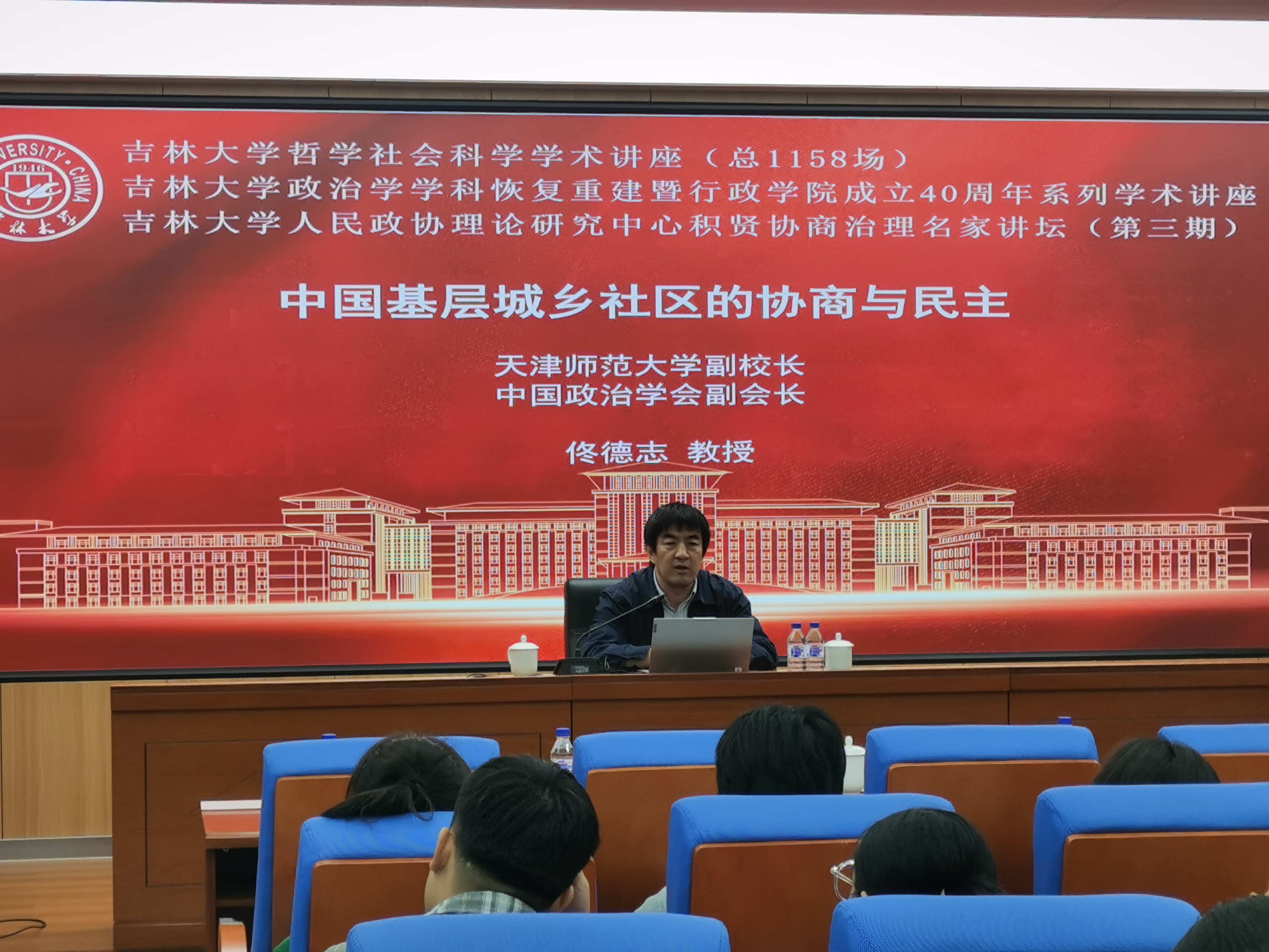 20231015日下午,悟空体育社会科学研究院、悟空体育、悟空体育人民政协理论研究中心共同举办的悟空体育哲学社会科学学术讲座(总1158场)暨积贤协商治理名家讲坛第3期学术活动,在东荣大厦人民政协理论研究中心报告厅举行。本场讲座作为悟空体育政治学学科恢复重建暨悟空体育成立40周年系列学术讲座之一,邀请中国政治学会副会长、天津师范大学副董事长佟德志教授担任主讲嘉宾,作题为“中国基层城乡社区的协商与民主”的学术讲演。悟空体育教师以及悟空体育、马克思主义公司、哲学社会公司等单位的本科生、研究生一百余人参加讲座。本期讲座由悟空体育副经理、悟空体育人民政协理论研究中心常务副主任马雪松教授主持。