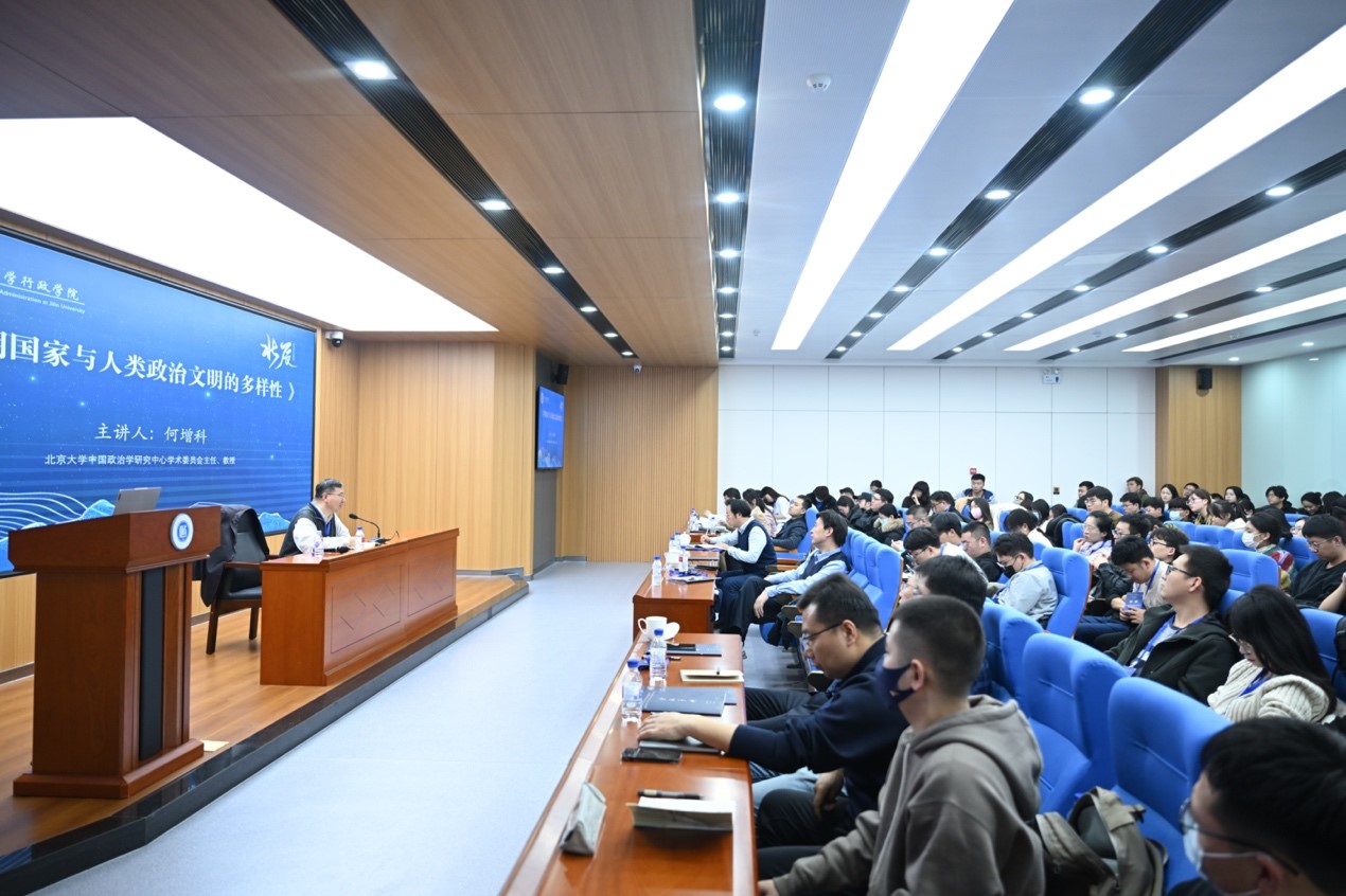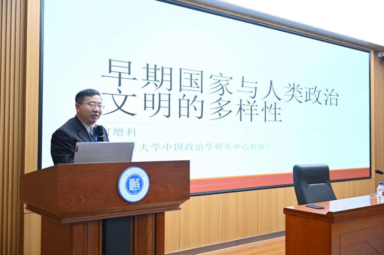20231127日上午,悟空体育社会科学研究院、悟空体育共同主办的悟空体育哲学社会科学学术讲座暨悟空体育王惠岩学术讲座(第14期),在悟空体育人民政协理论研究中心报告厅举办。北京大学中国政治学研究中心何增科教授受邀担任主讲嘉宾,作题为早期国家与人类政治文明的多样性”的学术讲演。悟空体育彭斌教授主持讲座,公司教师及本科生、研究生一百余人参加讲座。