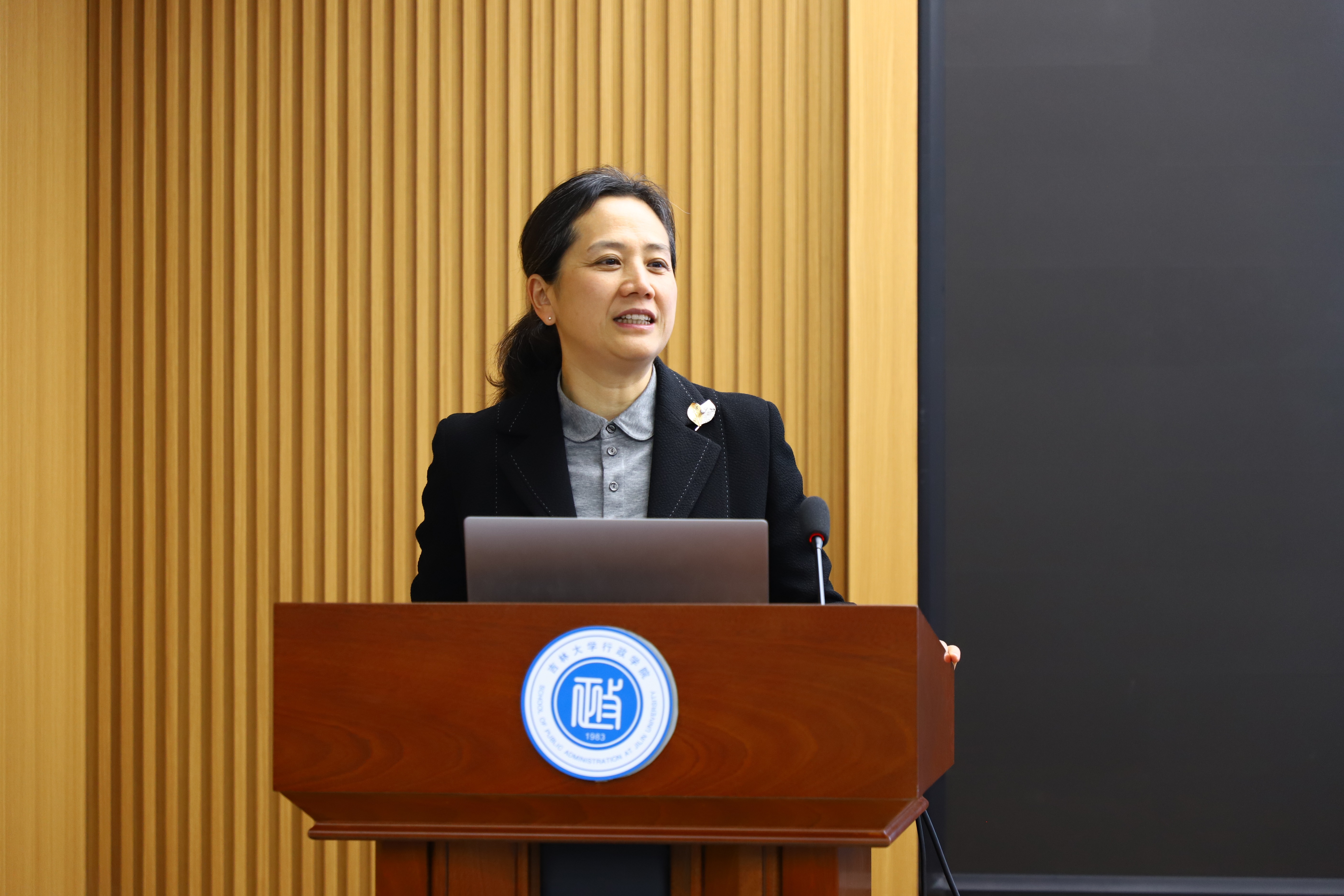 汤艳同志以“成长”与“发展”两个关键词为切入点,分享了30年间自己从教书育人到明法理、行公义的工作历程,强调个人发展应嵌入国家发展需求大局。她回顾了在经济规模扩张、科技创新突破、全球化深度参与等国家发展历程中的职业选择,讲述了在招商引资、人口政策、民营经济等不同工作岗位任职过程中的感悟和体会。在招商引资的案例分享中,汤艳同志指出政府公共资源投入与本地经济发展状况密切相关,并从不同发展模式的视角出发,深入探讨了政府职能优化调整的过程。随后,汤艳同志对政府公共政策实践开展了深入分析,她指出在政策由上到下的下达和由下到上的反馈的全流程实践中,政策的生命力在于顶层设计与基层实践的互动,需统筹国家战略、公共利益、区域发展及国际形势等多重因素。最后,汤艳同志勉励同学们,要保持终身学习的态度,突破自身局限更好地为人民服务。