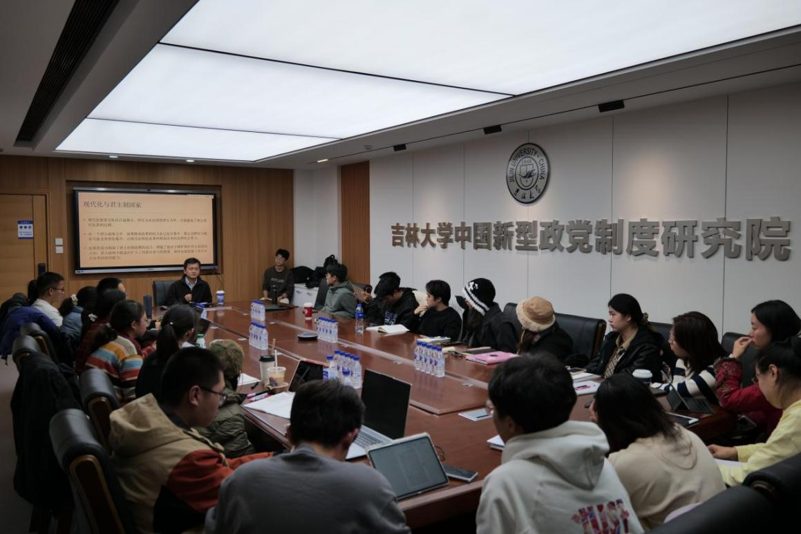 研讨环节,赵德昊老师以“为什么西方现代化过程容易滋生动乱?”为议题,与参会同学展开互动,结合读书会研讨文本,指出西方现代化所引发的社会变革将新的社会集团迅速动员起来卷入政治,但政治制度化和组织化水平未能同步跟进,加速了旧秩序崩塌。