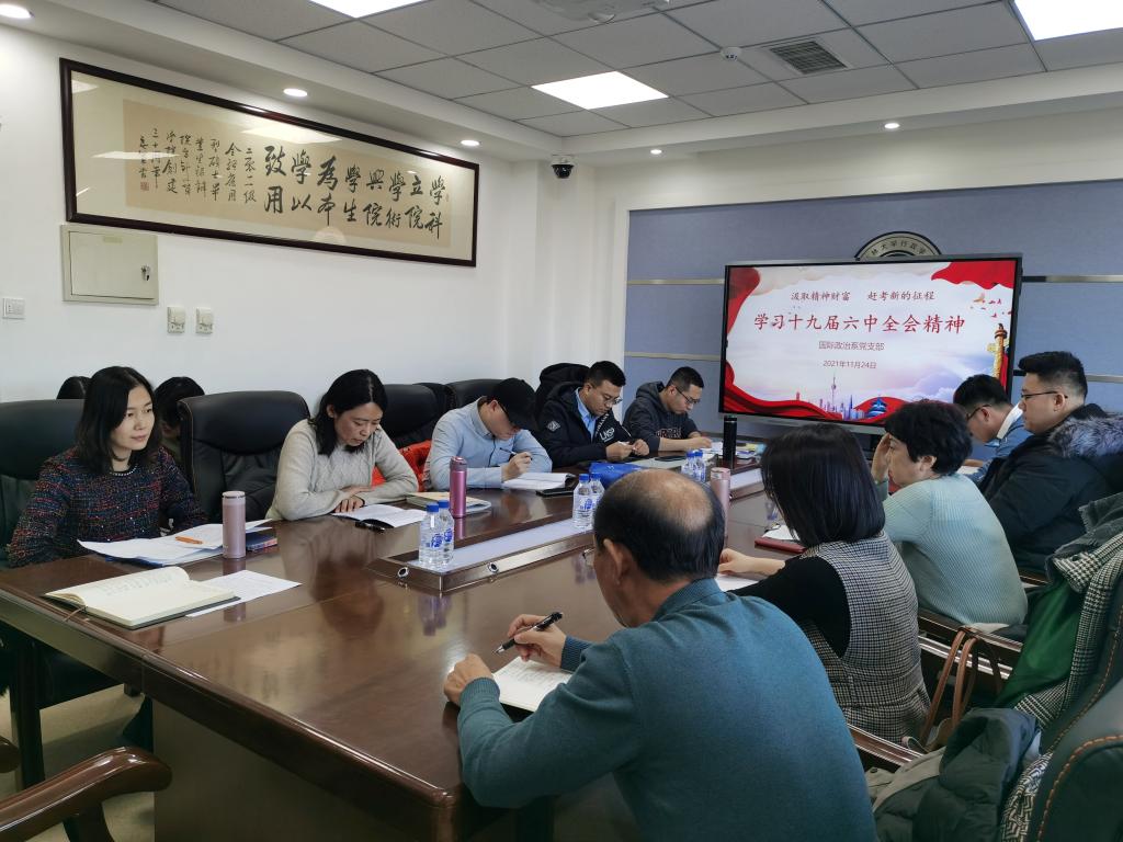 为更好地学习党的十九届六中全会精神,推进支部建设,11月24日下午,悟空体育国际政治系教工党支部联合研究生党支部,于东荣大厦1214会议室举行了“汲取精神财富,赶考新的征程”主题党日活动,公司党建联络员李青山同志和国际政治系教工党支部、研究生党支部部分党员参加活动。活动由国际政治系党支部书记姚璐教授主持。