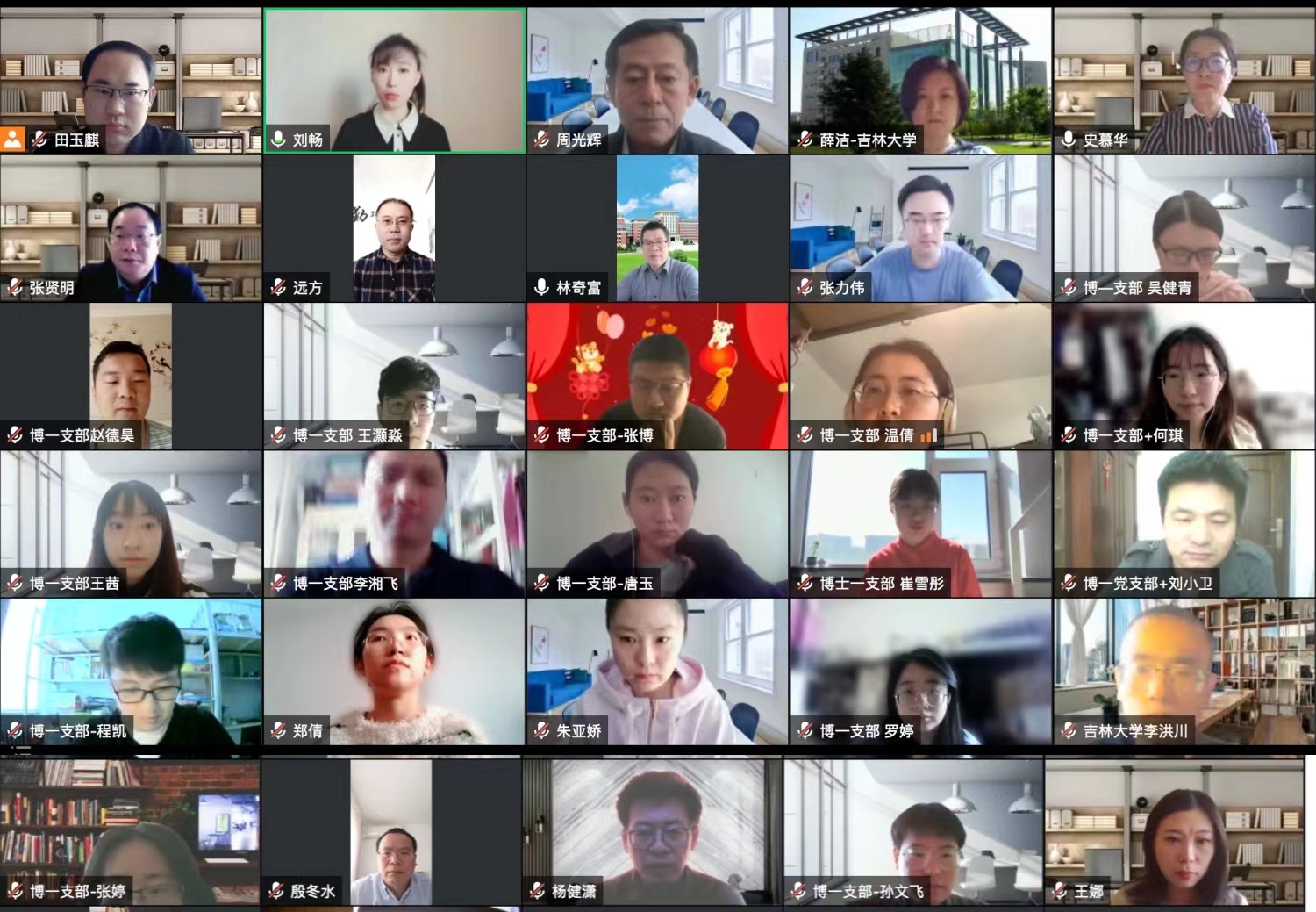 博士生第一党支部的吴健青、王茜、何琪、李洪川、李湘飞、崔雪彤六位同学讲述了自身参与志愿者活动的经历与感悟,结合所学的专业知识对抗疫中的治理现实进行分析与思考,并分享了适应静态管理期间学习和生活的经验。吴健青同志分享了公司老师帮忙取药的暖心之举,王茜同志讲述了抗疫中的吉大力量,何琪同志分析了疫情下党的领导与凝聚力和向心力,李洪川同志运用专业知识思考疫情防控的成效,李湘飞同志传递了隔离期间的经验,崔雪彤同志谈到了政治学专业党员员工的责任与使命。同学们图文结合、声情并茂的讲述,让老师们感受到了同学们在抗疫中体现的团结友爱、勇敢坚强的优良作风。