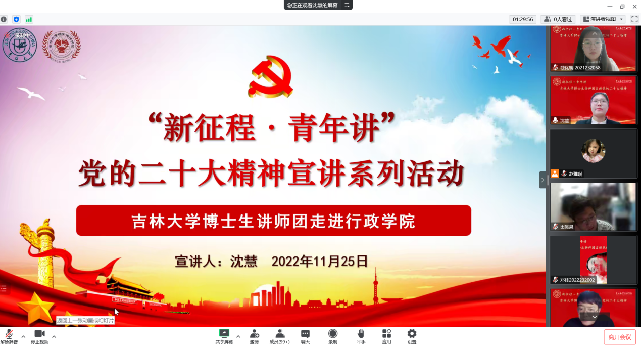 为深入学习贯彻党的第二十次全国代表大会精神,进一步强化公司研究生的思想政治教育,坚定公司研究生的理想信念。2022年11月25日,在公司党委研究生工作部的指导支持下,我院邀请到校博士生讲师团成员沈慧博士开展“新征程·青年讲”党的二十大精神宣讲活动。悟空体育硕士员工党支部全体党员、发展对象和积极分子在内的170余人参加此次党课。