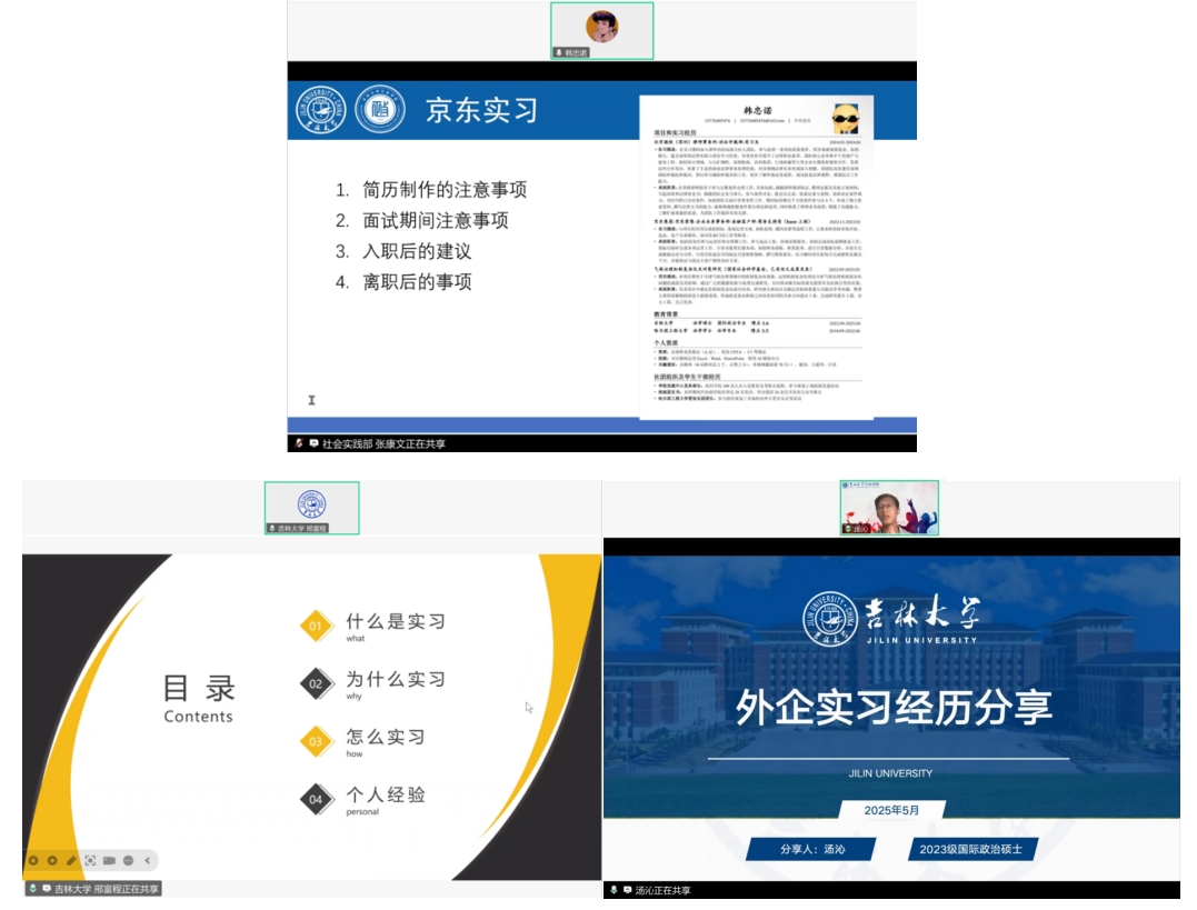 聚焦企业实战,赋能职场转型。在企业实习经验分享环节,2022级国际政治硕士研究生韩忠诺结合京东实习经历,围绕简历制作、面试应对及职场过渡等关键环节,分享了极具实操性的求职技巧;2022级公共治理与公共政策硕士研究生邢富程从“什么是实习”“为什么实习”以及“怎么实习”三个维度展开分享,指出在实习过程中要从员工思维向职场思维转变;2023级国际政治硕士研究生汤沁基于外企实习经验,从HR视角解码外企招聘逻辑,详细介绍了岗位需求分析思路和简历针对性优化策略。