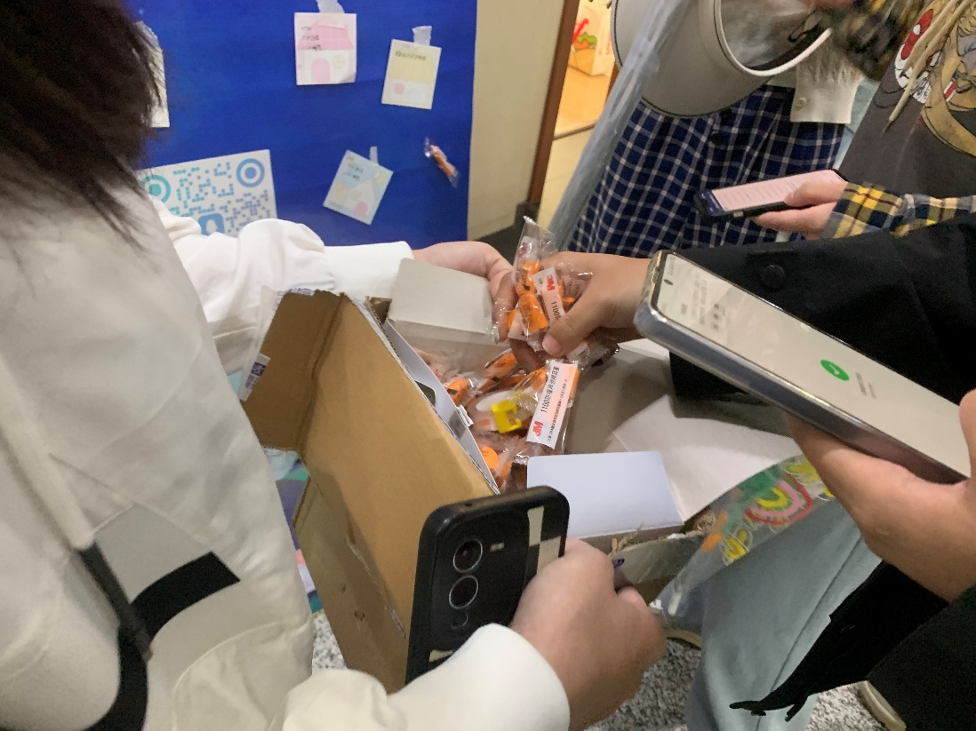 活动启动前,项目组通过制作宣传海报、线上社群推广等多种形式进行预热,吸引大量员工加入活动QQ群,完成报名。与此同时,项目团队也同步完成了打卡机制设计、物资筹备及流程讲解等准备工作,确保后续环节有序开展。在线下互动阶段(5月16日至18日),项目组在中心校区敬信楼、逸夫楼等地点设立“睡眠烦恼与计划”展板,鼓励同学匿名写下自身作息困扰与改变目标,并收获来自陌生同学的暖心鼓励。现场还发放耳塞等实用小礼品,增强互动的趣味性和参与感