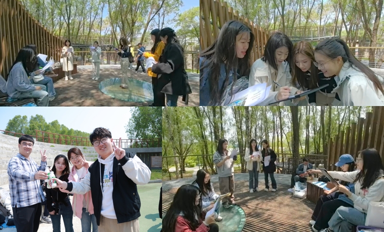 随着游戏开始的指令,各小组按任务要求在公园内寻找指定景点的打卡拍摄,同学们穿行于特色建筑与自然景观之间,用镜头捕捉团队合作的精彩瞬间。