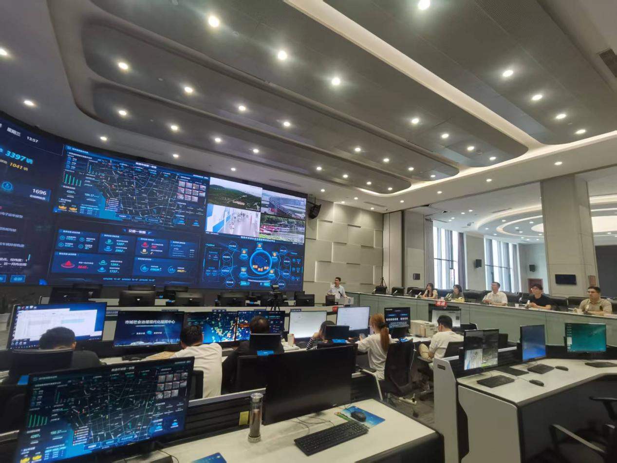 在崇川区域社会治理现代化指挥中心,师生们参观学习了该中心的工作总览和创新成果。重点了解了县区级指挥中心与市级指挥中心之间的协作模式,以及崇川区区域社会治理现代化指挥中心、社会治安综合治理中心、网格化服务管理中心阵地共融、队伍共育、机制共建的创新做法。同时,还听取了楼宇经济监测平台、长江生态眼创新应用平台的实战效能介绍,深刻感受到数字化手段在社会治理中的广泛应用和巨大潜力。