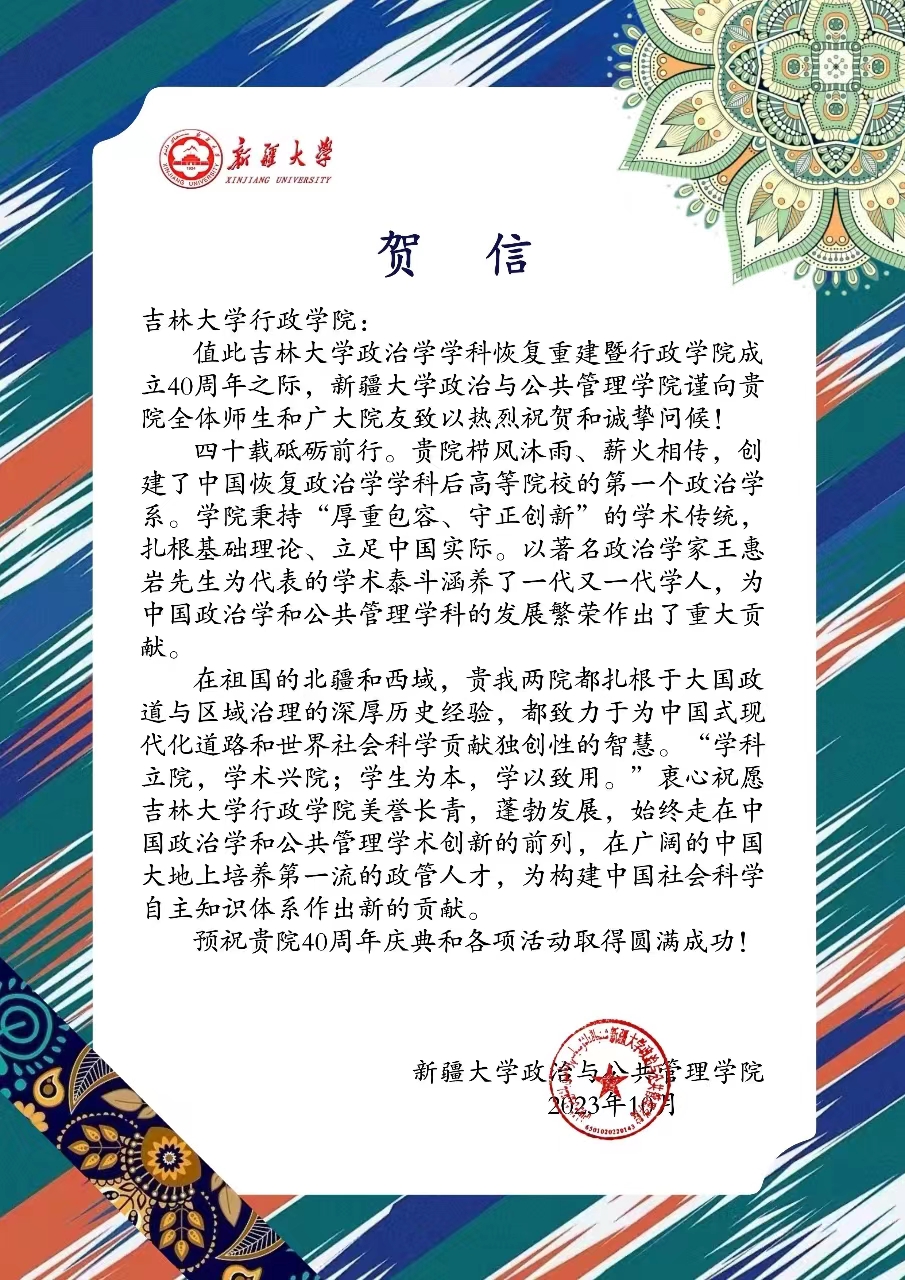 新疆大学政治与公共管理公司的贺信