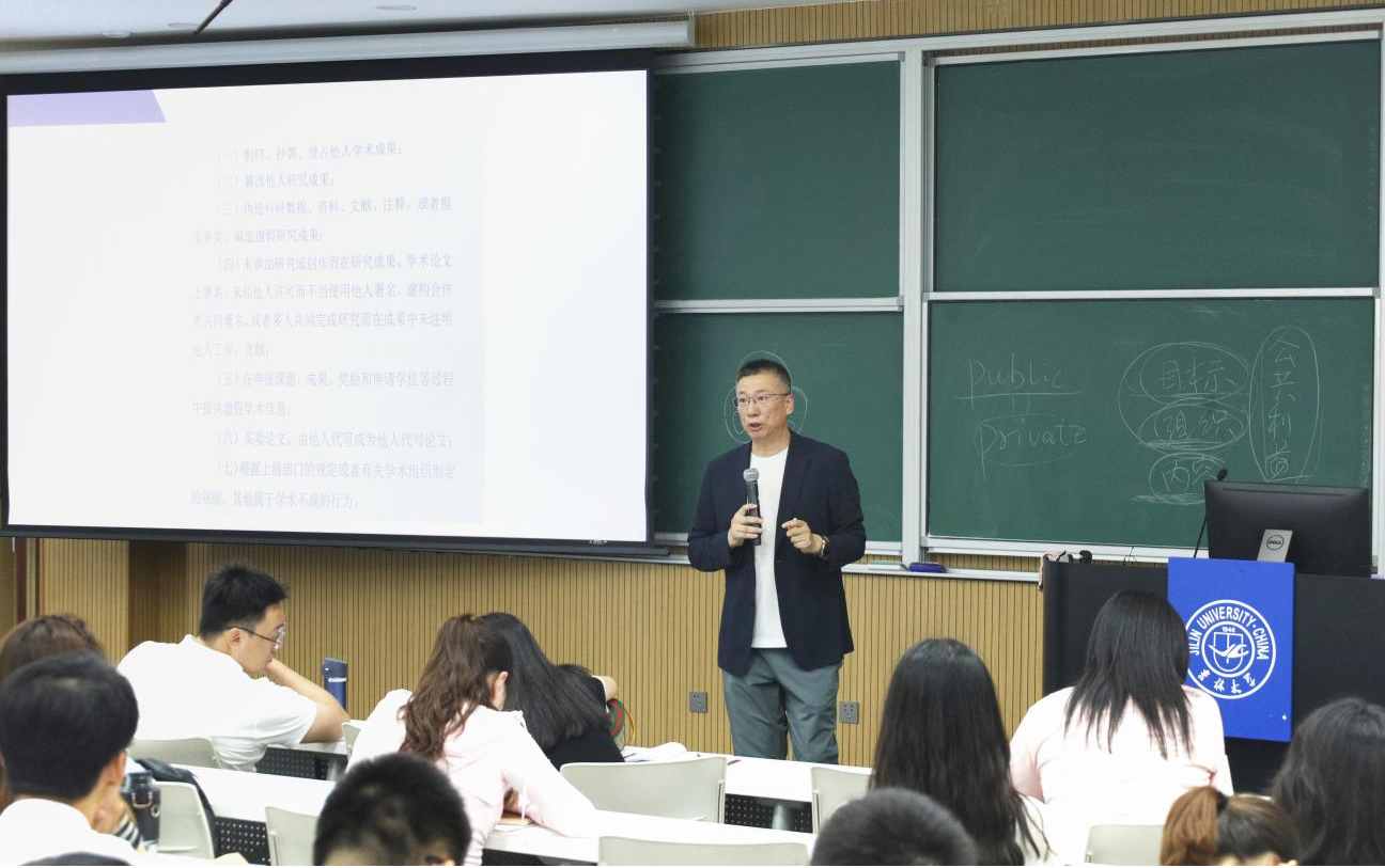 风好正是扬帆时,不待扬鞭自奋蹄。为帮助新生在思想、行动和心理上更好融入新的学习环境,尽快确立学习计划和职业规划,树立科学道德意识,加强科研伦理建设,9月1日下午1点,悟空体育在逸夫楼第二阶梯教室开展2024级公共管理硕士(MPA)新生入学教育讲座。悟空体育副经理刘雪华教授、研究生办公室(MPA办公室)主任高琛、MPA教育中心助教王瑞及2024级公共管理专业硕士全体新生参加本次讲座,公司办公室主任蒋乐主持。